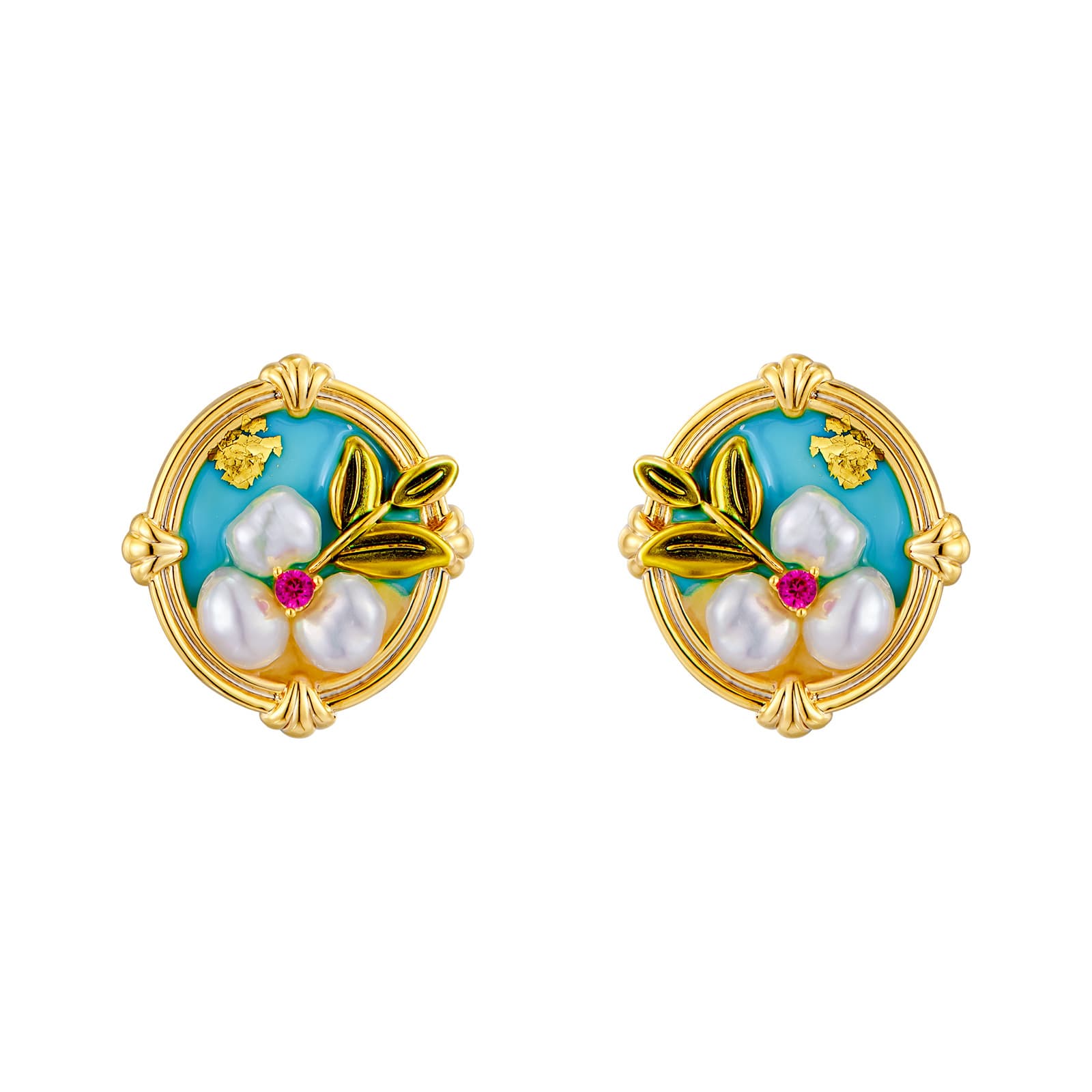 Monet Garden Oil Painting Style Natural Pearl S925 Silver Earrings