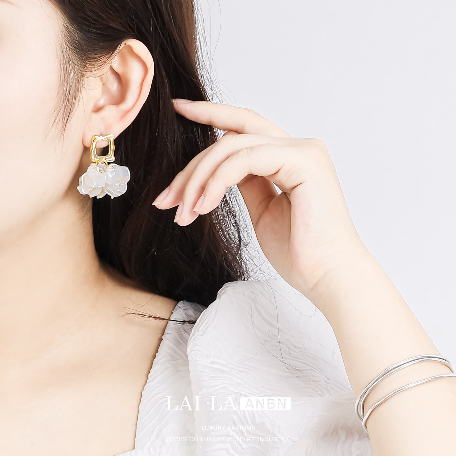 Introduce your customers to our elegant White Flower S925 Silver Ear Studs, a timeless accessory designed to captivate