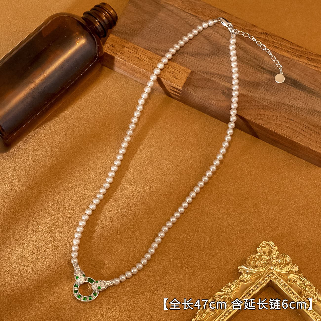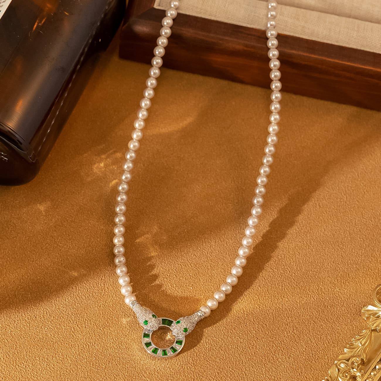 Diamond Green Zircon Light Purple Pearl Snake Necklace