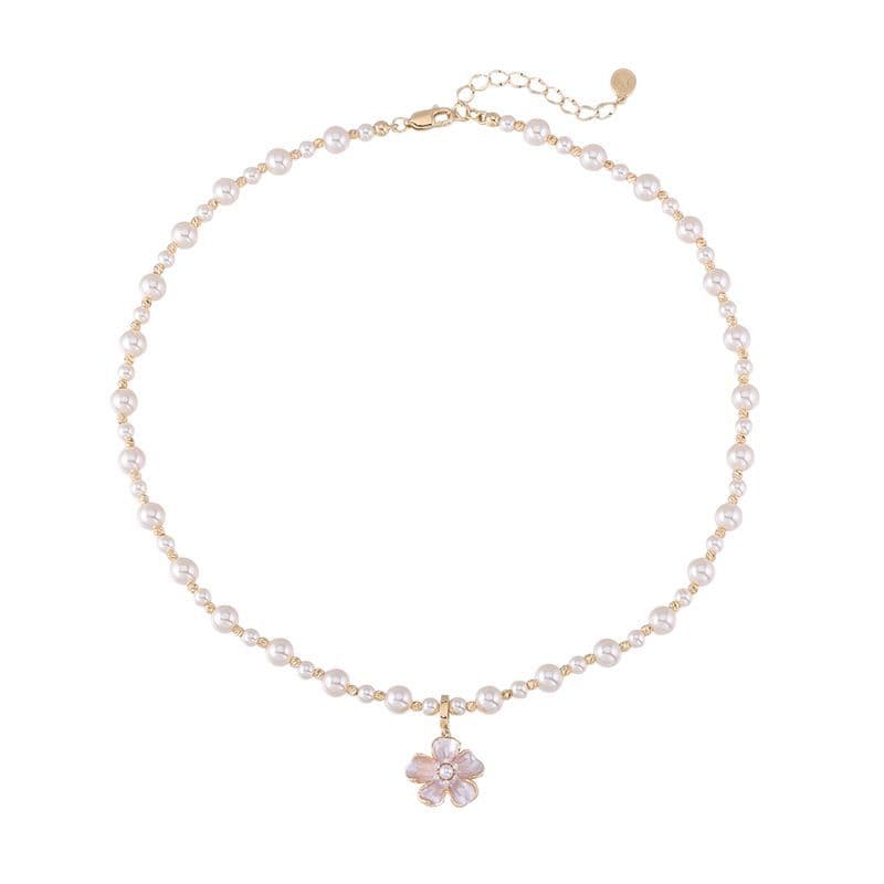 Introduce the exquisite Pink Camellia Pearl Necklace, a charming accessory designed to captivate. This elegant piece combines delicate floral