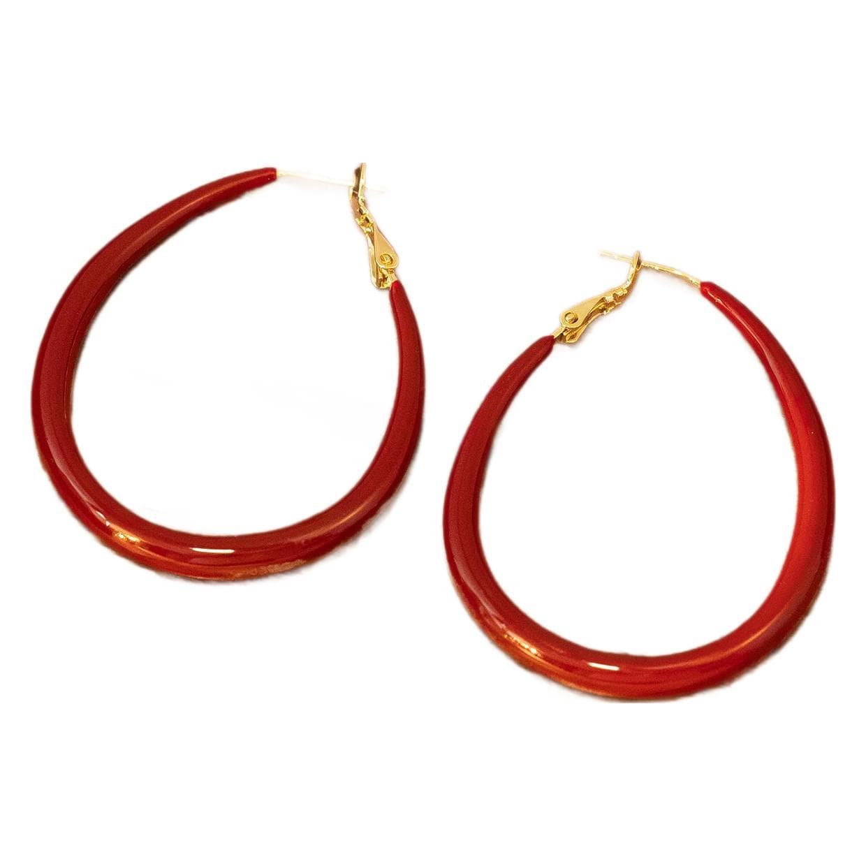 Wine Red 925 Silver Oval Hoop Earrings