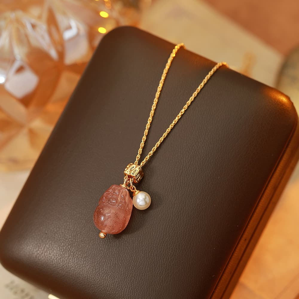 Elevate your inventory with our exquisite Natural Pink Strawberry Quartz Pixiu Pendant Necklace, a captivating piece designed for