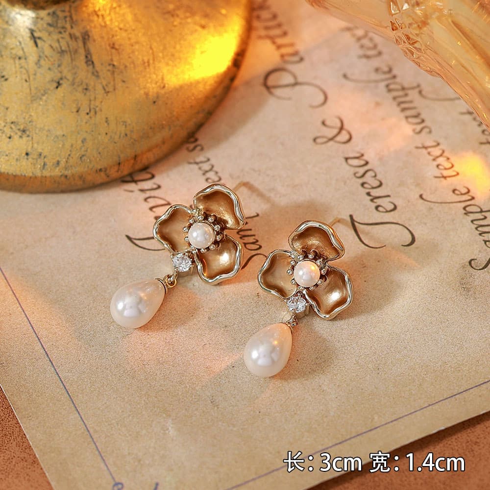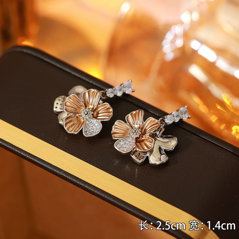 Copper Gold Plated Geometric Stud Earrings, Mocha Mousse, 925 Sterling Silver Post