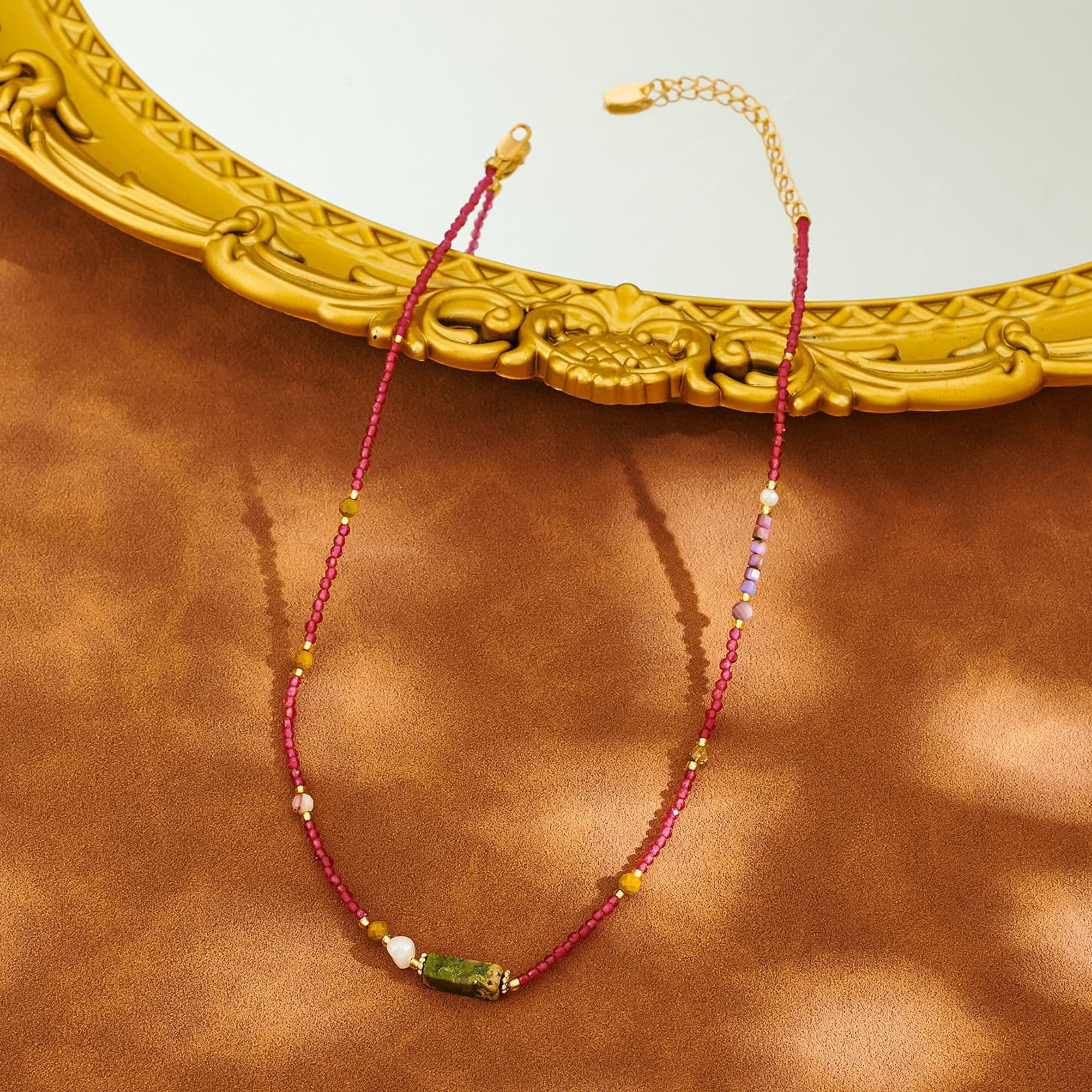 Introduce the Ainibini Colorful Pearl Gem Clavicle Chain, a versatile and eye-catching accessory designed to enhance