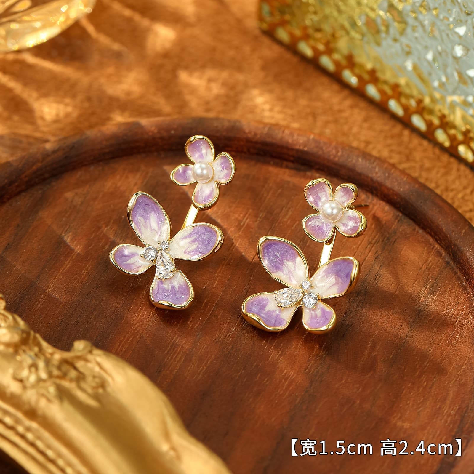 S925 Sterling Silver Purple Flower Pearl Earrings