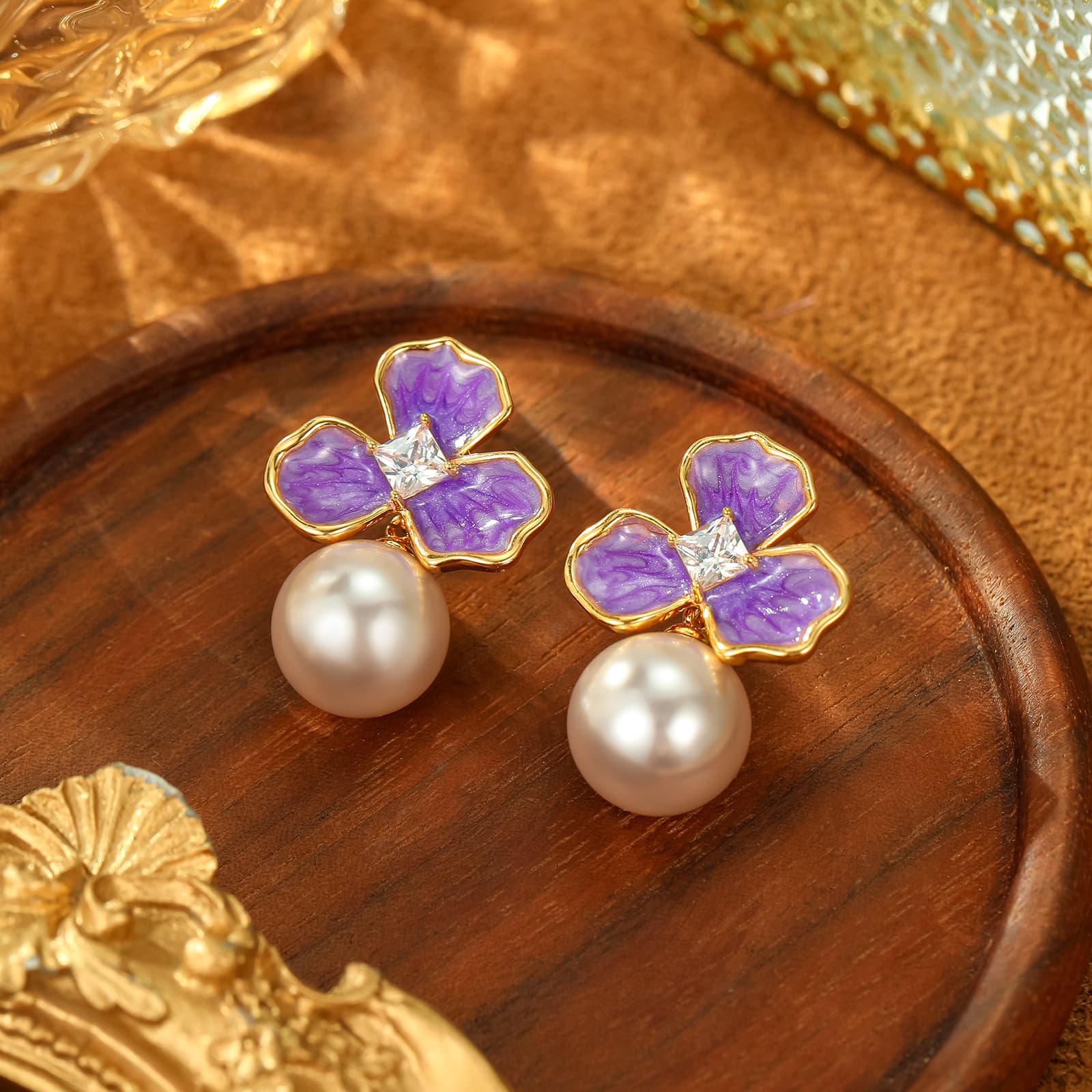 Presenting the Ainibini S925 Sterling Silver Purple Flower Pearl Earrings, an exquisite blend of natural elegance and modern designCalculateur de délai de livraison