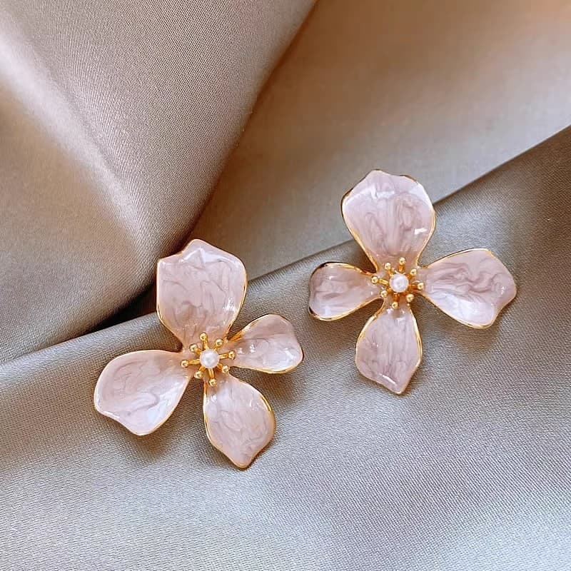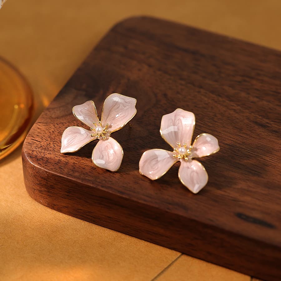 Quicksand Painting Oil Flower Pearl Earrings