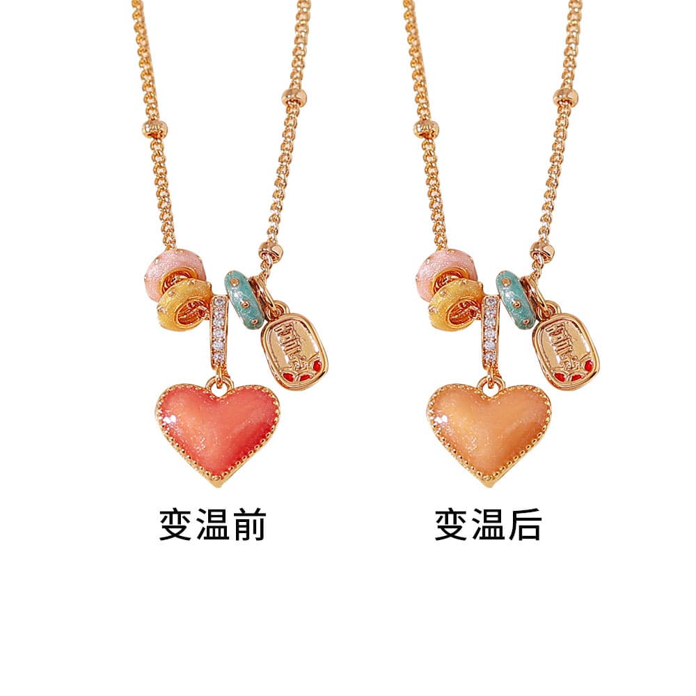 18K Gold Plated Temperature Change Dual-Wear Apple Heart Necklace