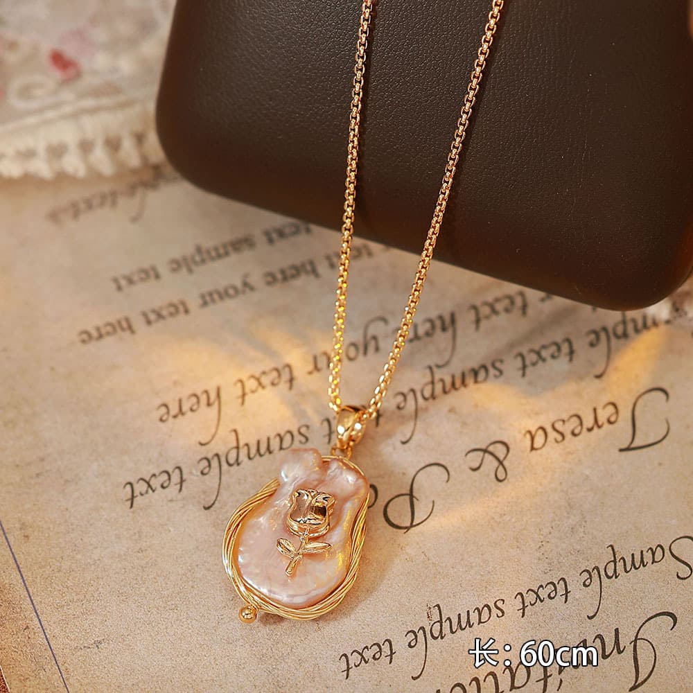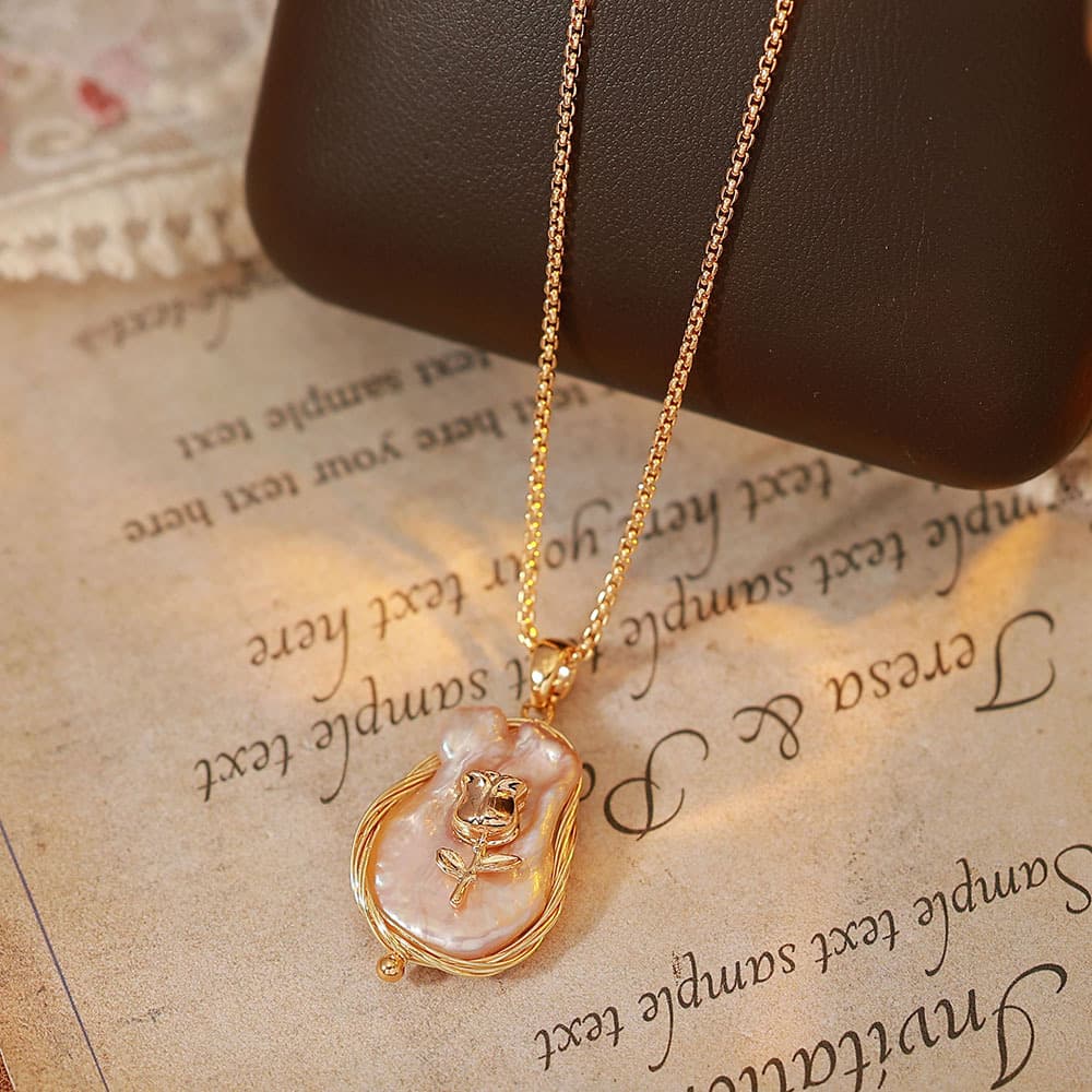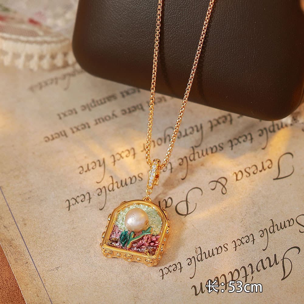 18K Gold Plated Vintage Oil Painting Baroque Pearl Necklace