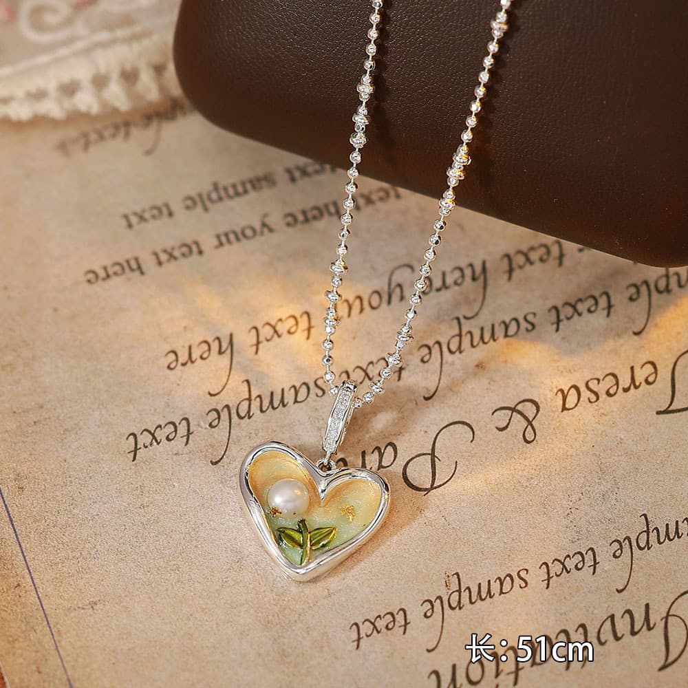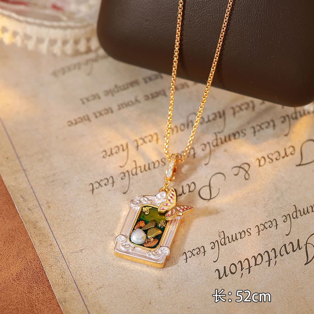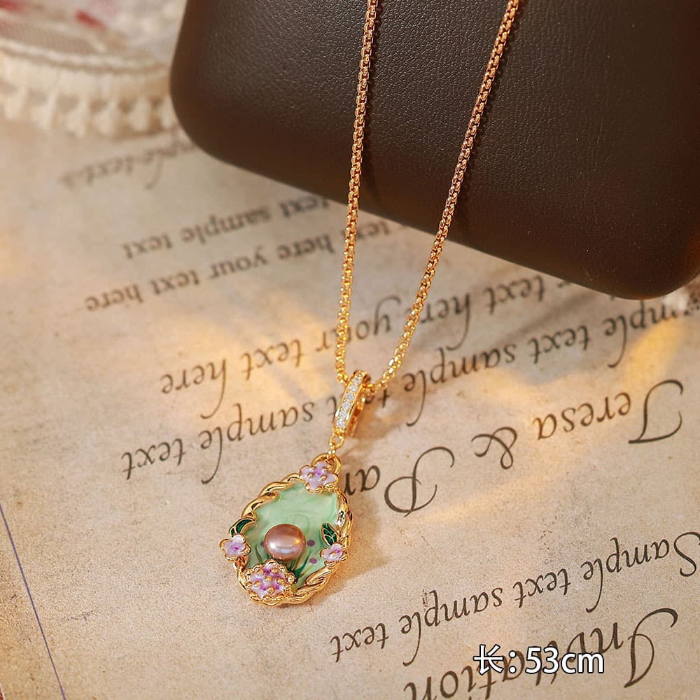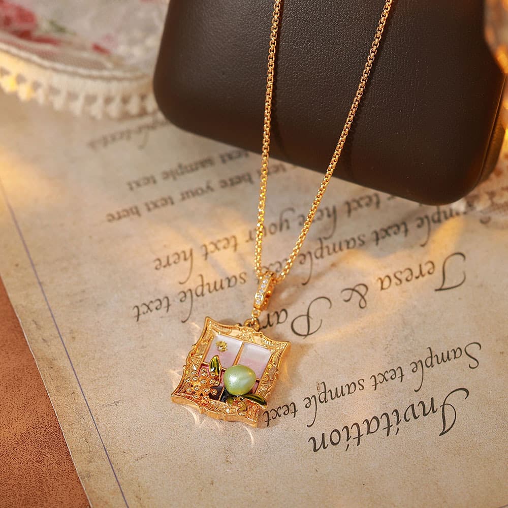 18K Gold Plated Vintage Oil Painting Baroque Pearl Necklace