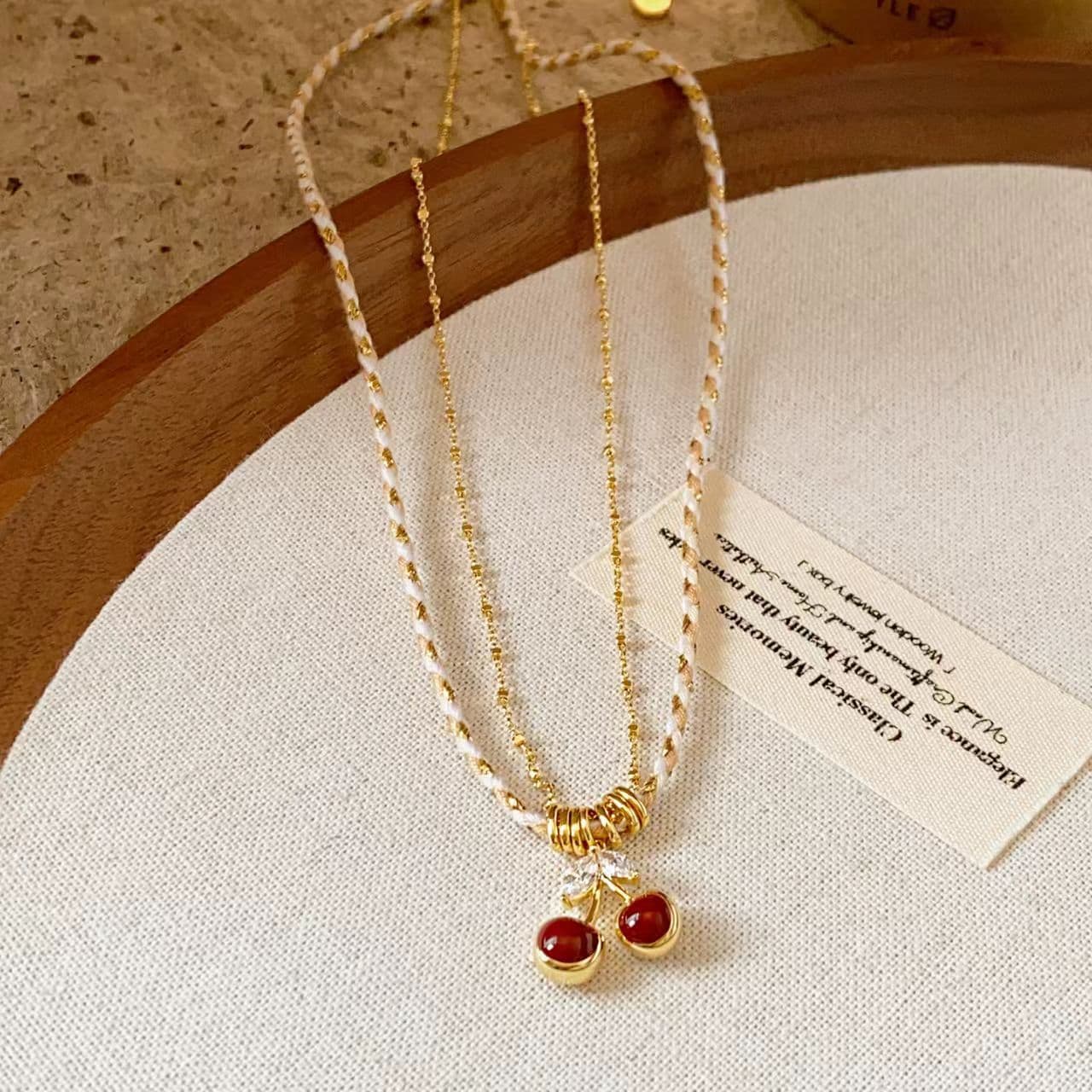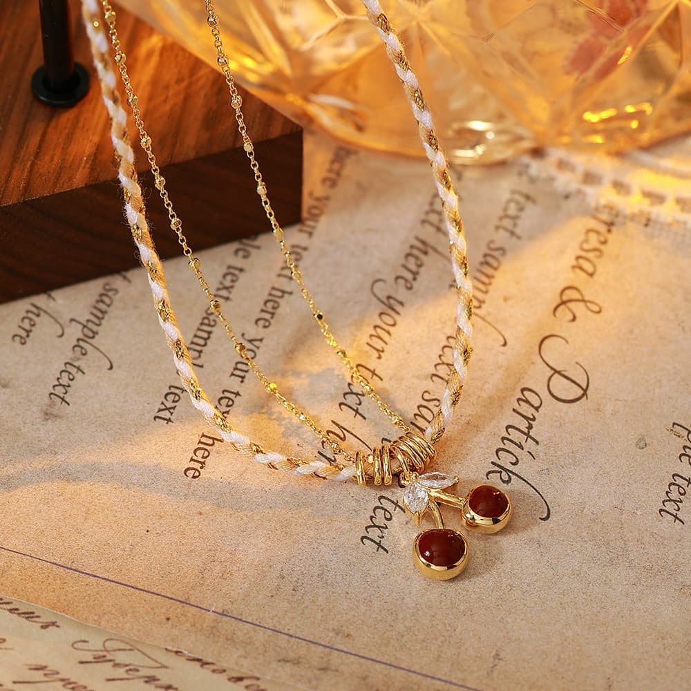 18K Gold Plated Micro-Inlaid Red Cherry Double-Layer Necklace