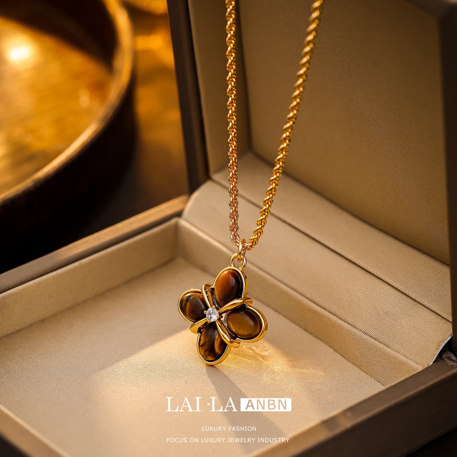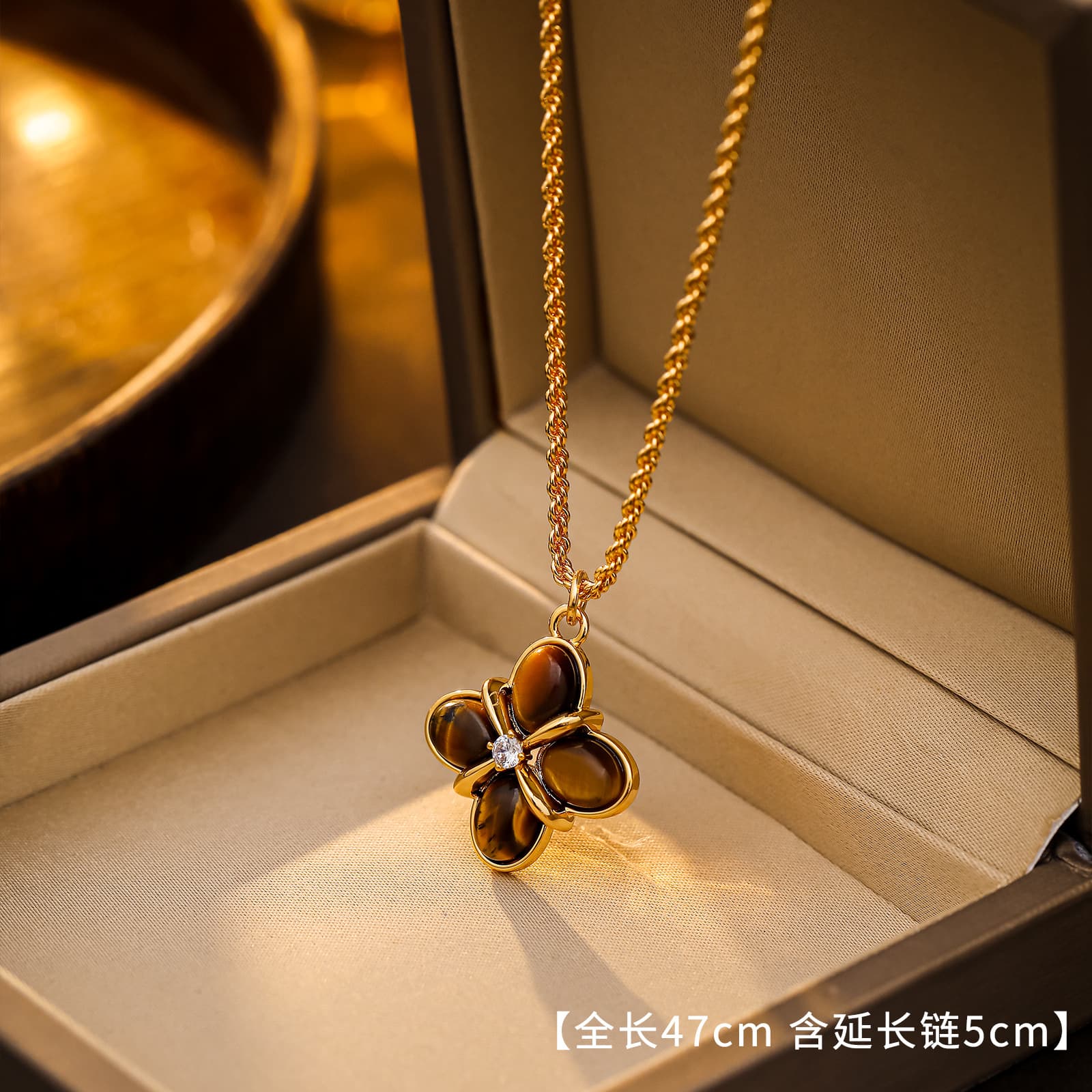 Introduce your customers to the exquisite Maillard Series 18K Gold Tigereye Necklace, a sophisticated accessory