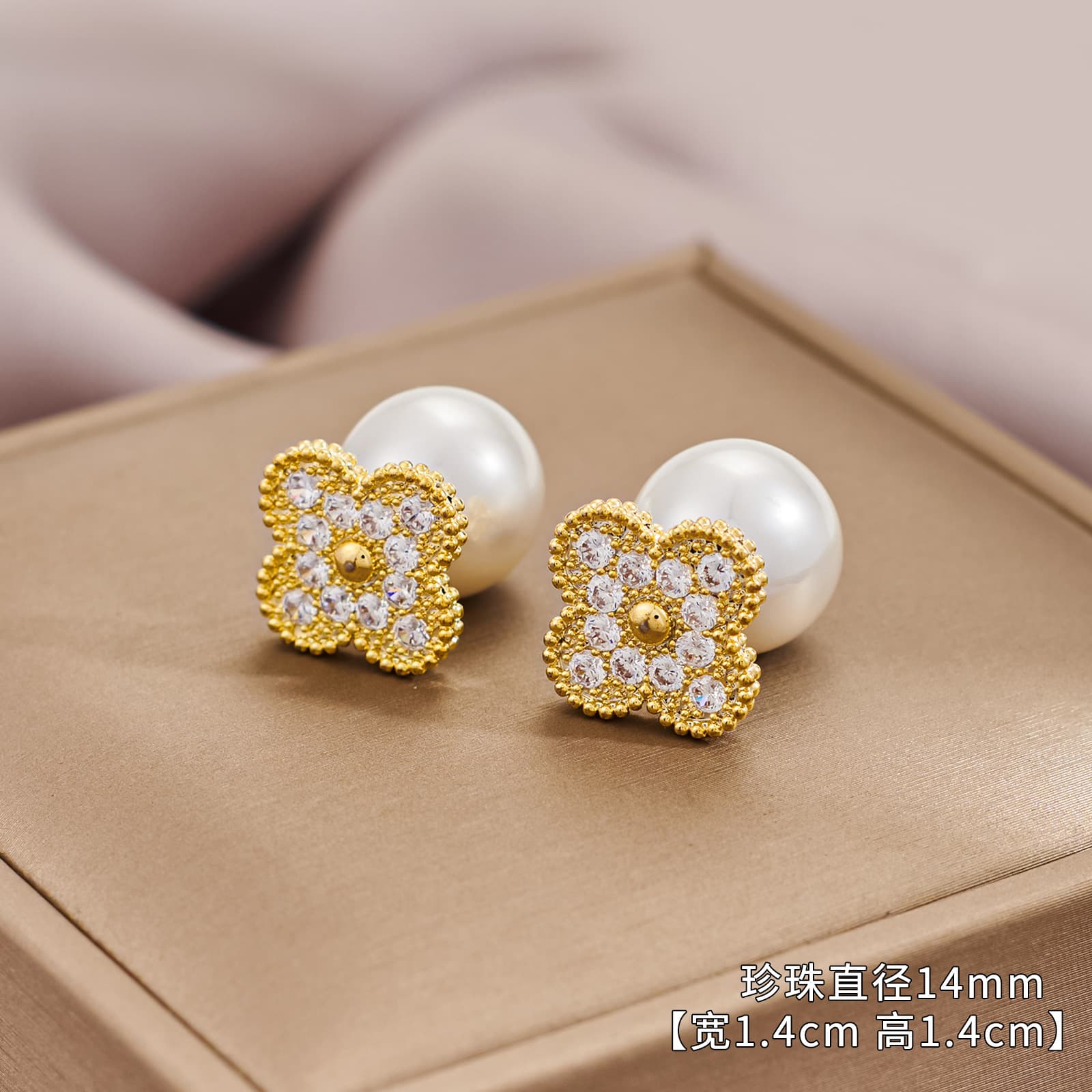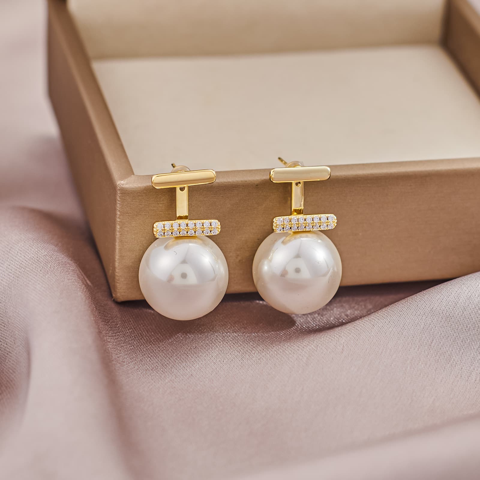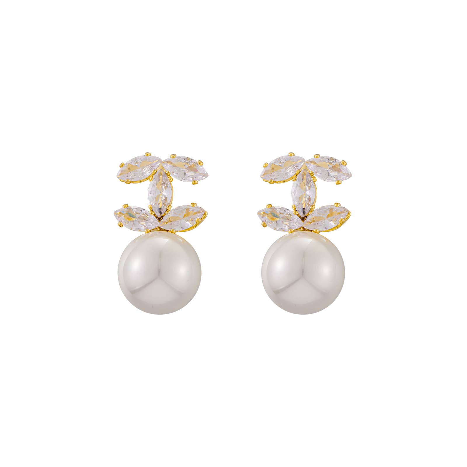 Wholesale Geometric Zircon Pearl Stud Earrings Gold Plated