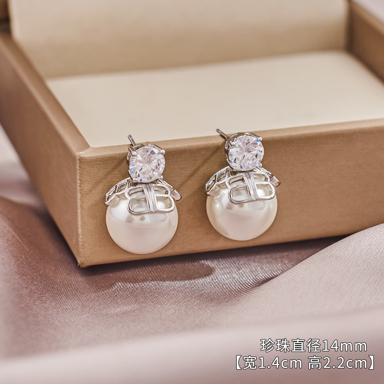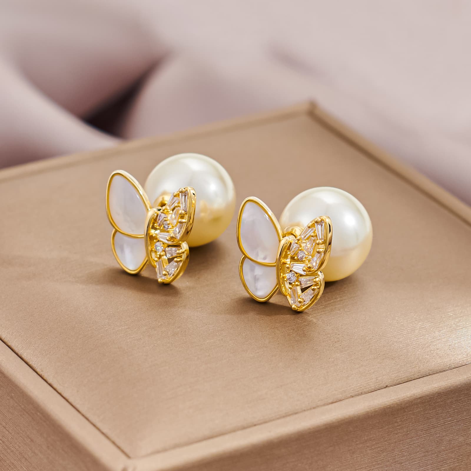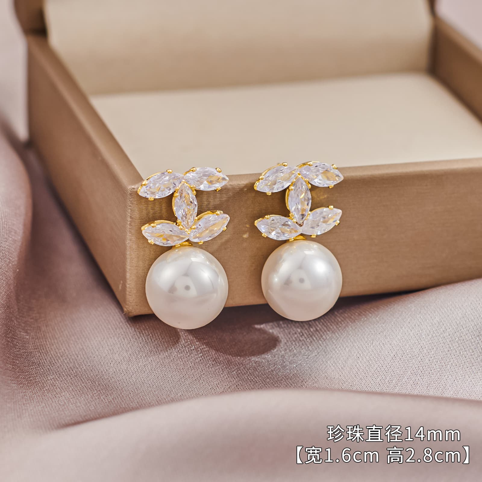 Wholesale Geometric Zircon Pearl Stud Earrings Gold Plated