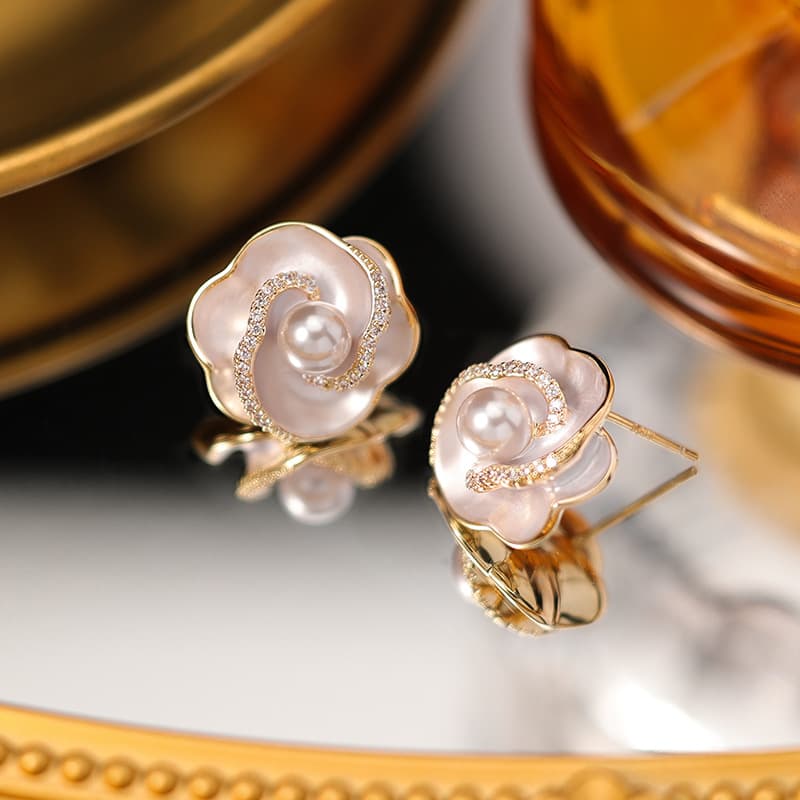 Introduce your customers to our exquisite S925 Post Camellia Pearl Stud Earrings, designed to capture timeless elegance