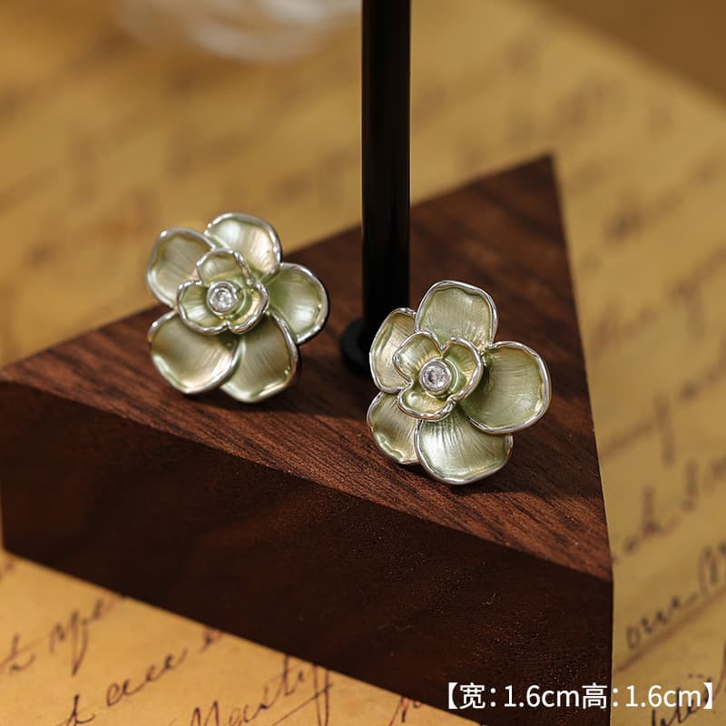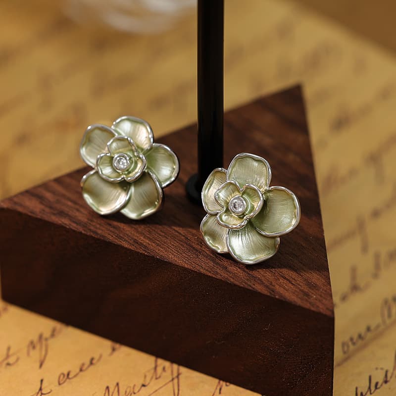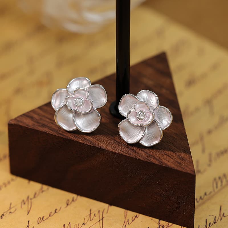Introduce your customers to our exquisite Electroplated Camellia Flower Stud Earrings, a must-have for any fashion-