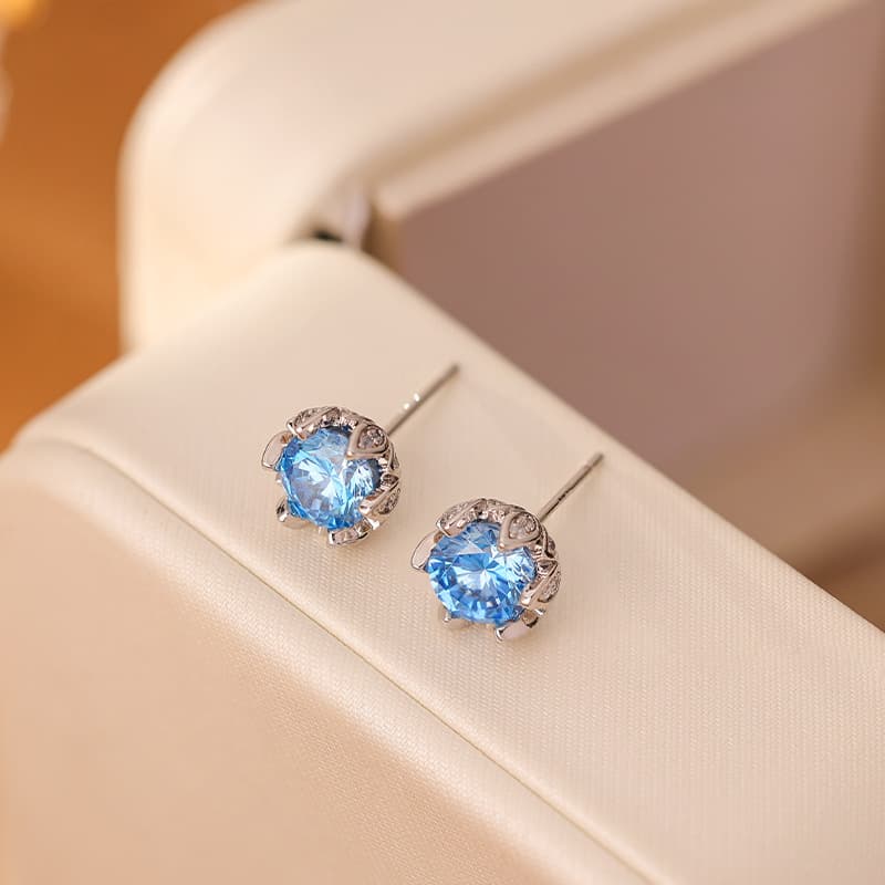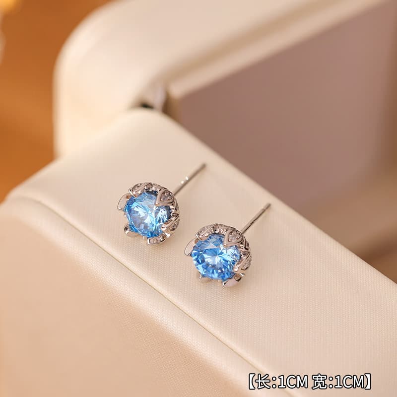 Presenting our elegant 925 Sterling Silver Water Cube Blue Crystal Stud Earrings, a captivating addition to any jewelry collection