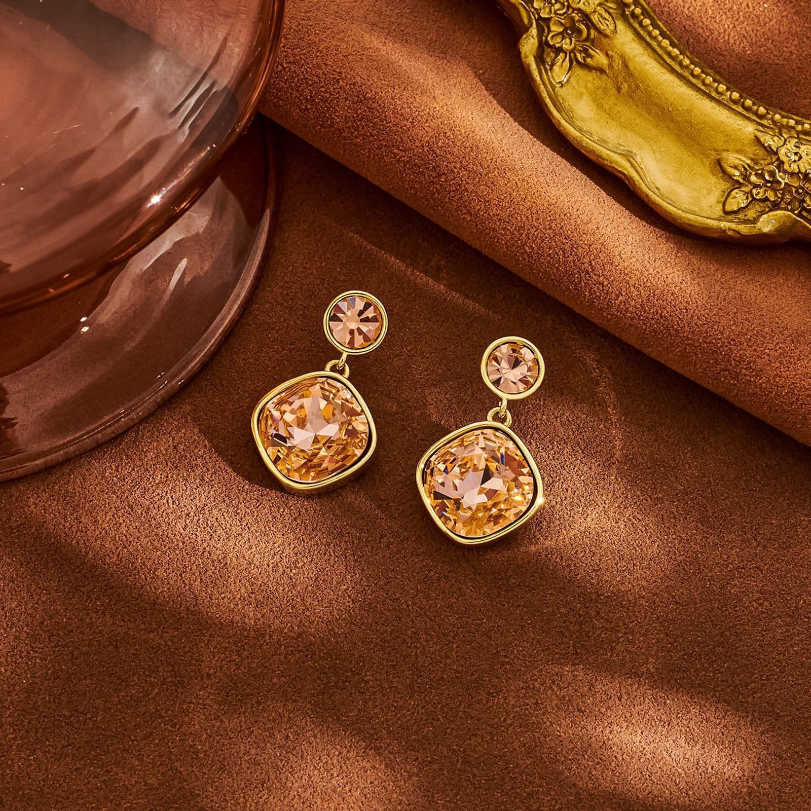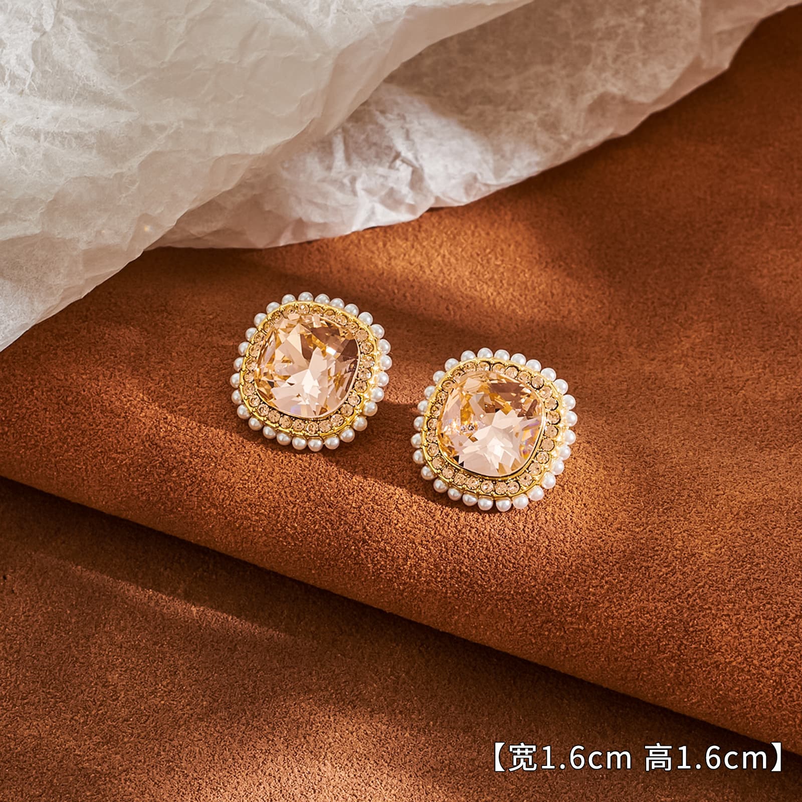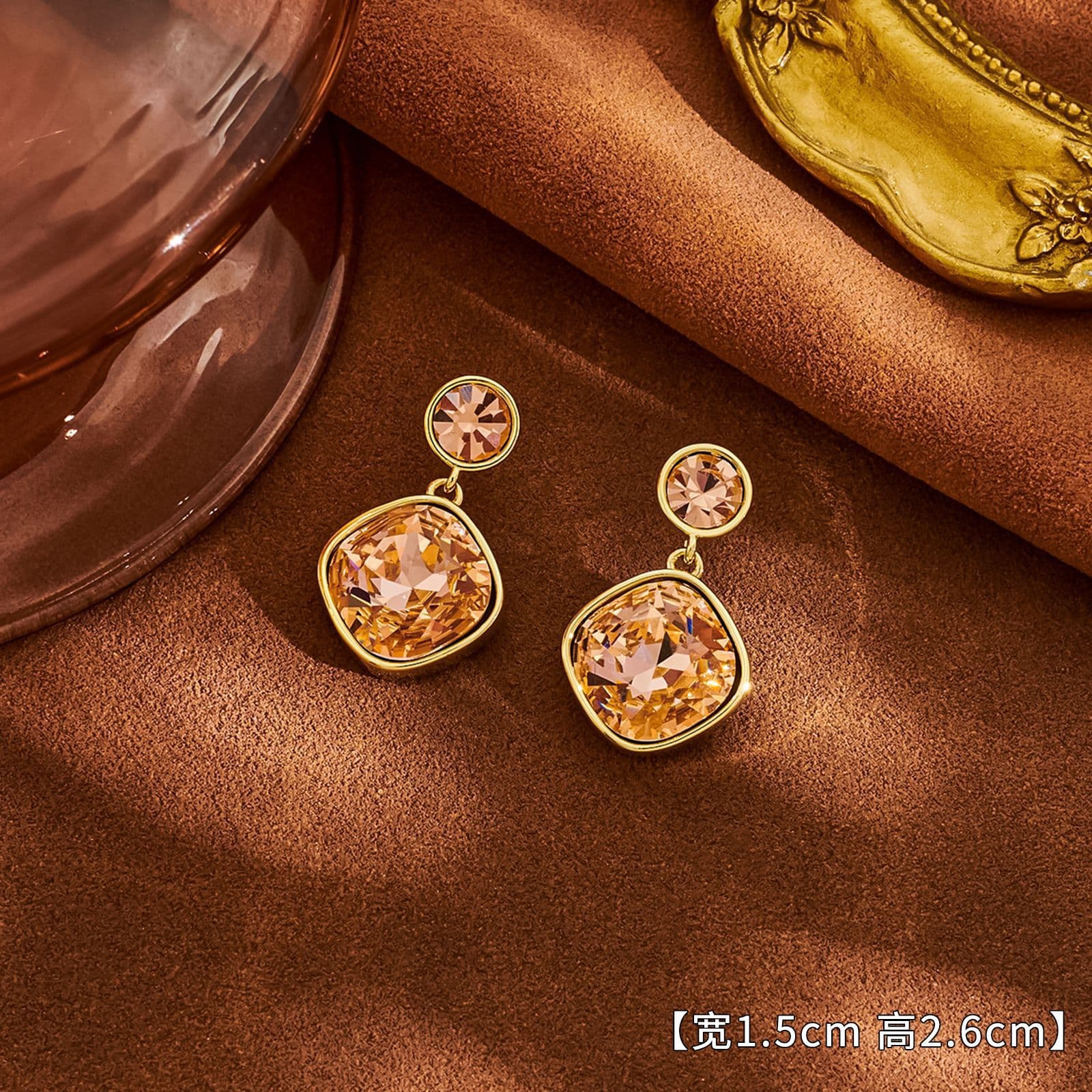 Champagne Zircon Geometric Stud Earrings S925 Post