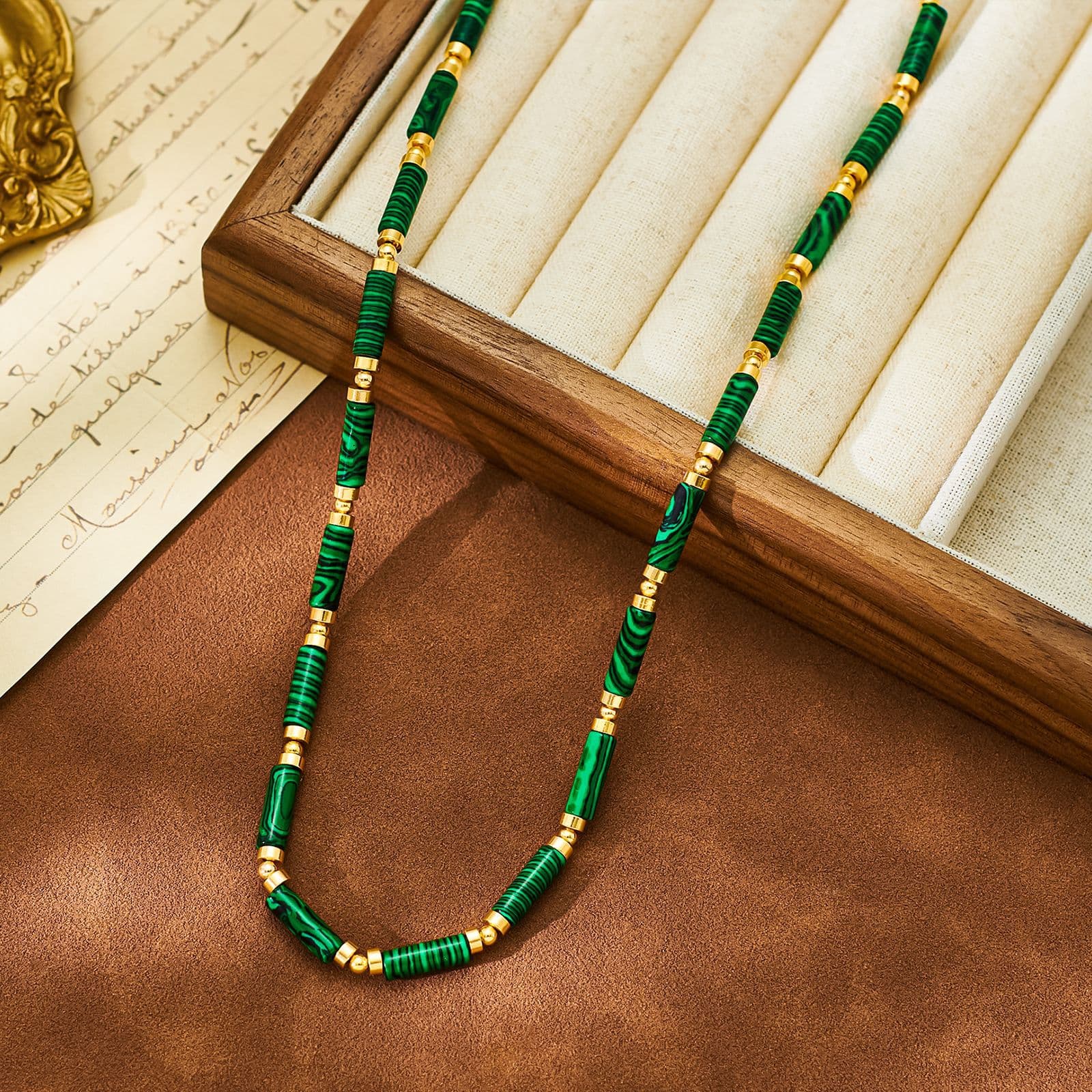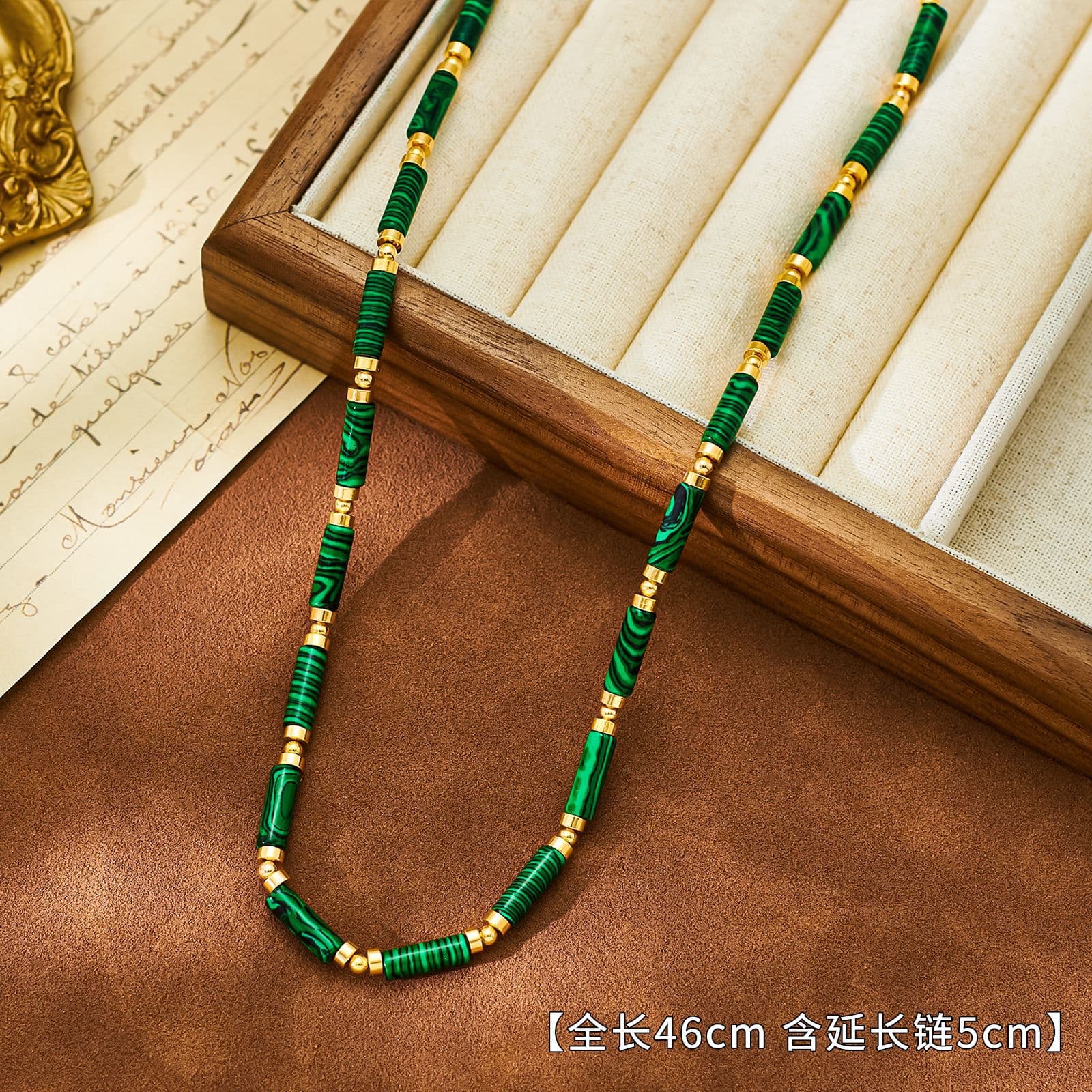 Introduce the Natural Malachite Beaded Chinese Retro Necklace, a captivating piece blending traditional aesthetics with natural beauty. This unique necklace appealsCalcolatore tempo di consegna
