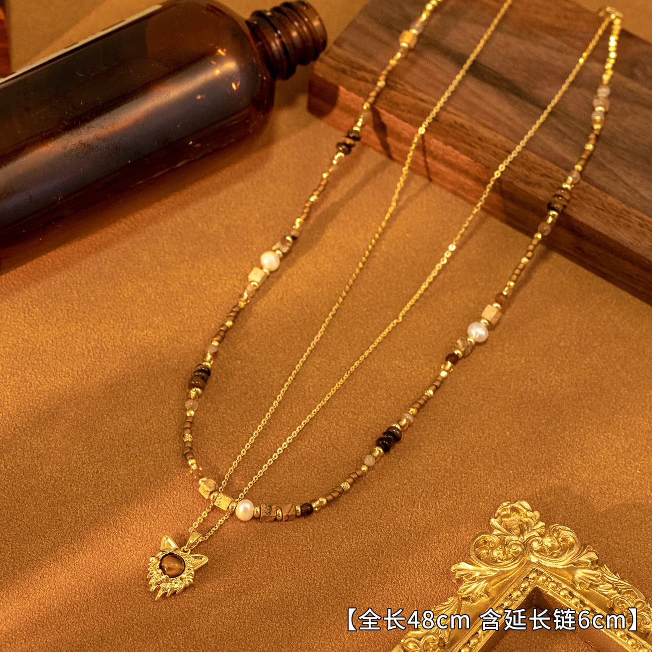 Introduce the Ainibini Maillard Natural Tiger Eye Double Layer Necklace, a captivating piece designed to elevate any jewelry collection.