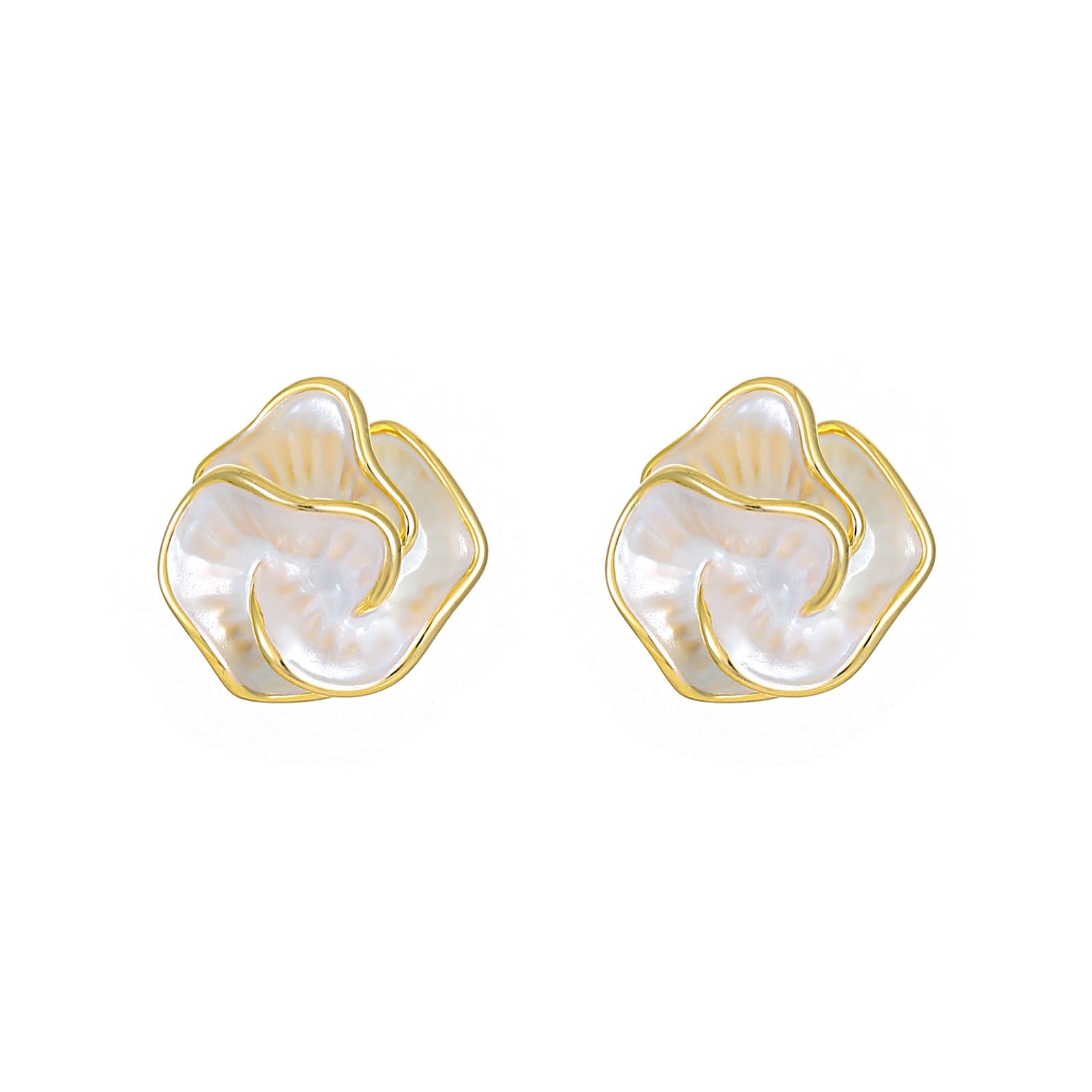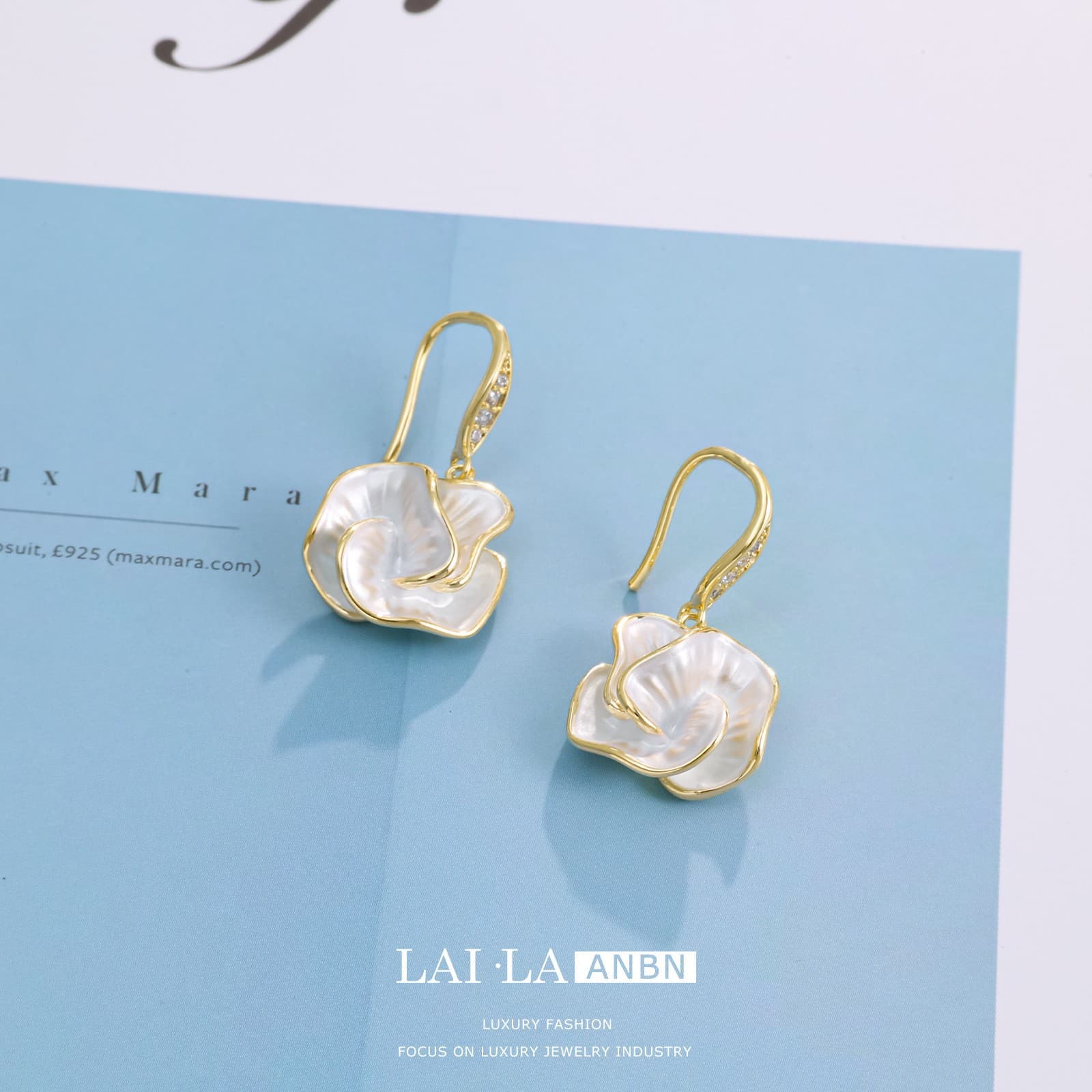Camellia Flower Stud Earrings S925 Silver Post Drip Oil