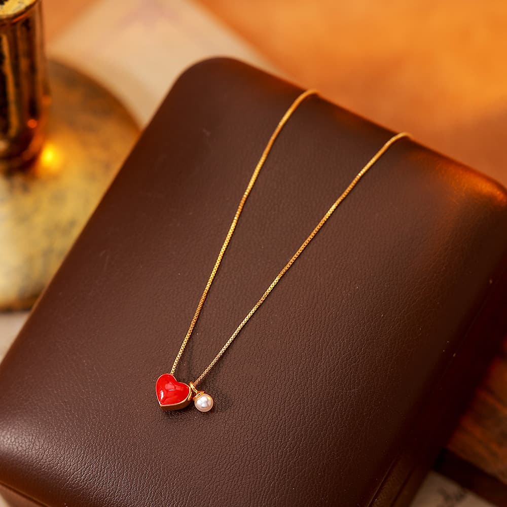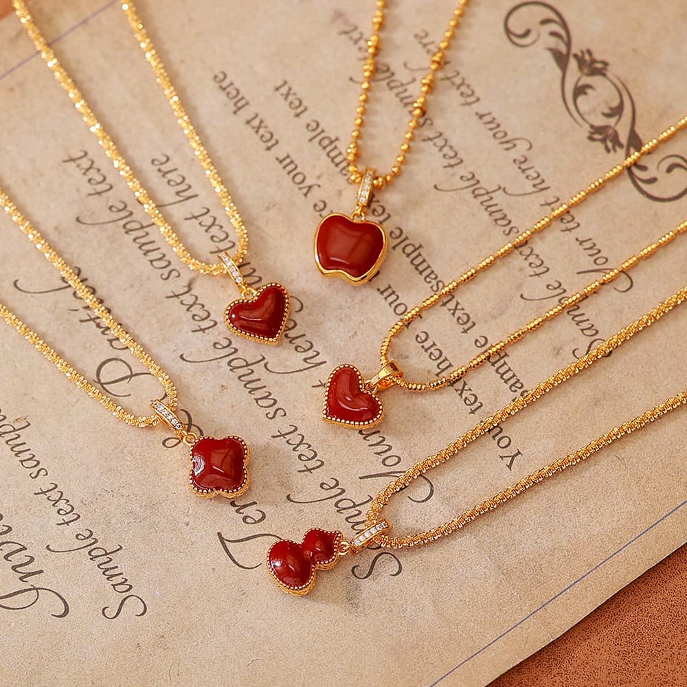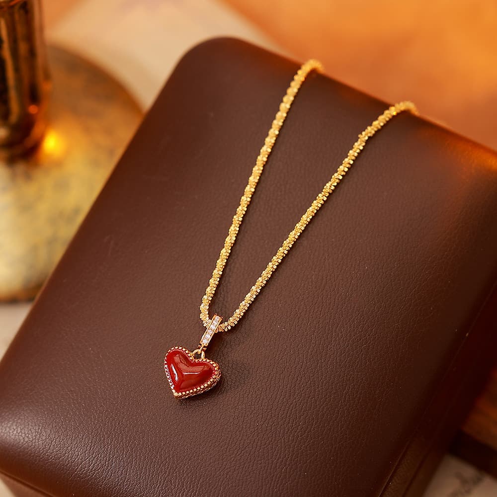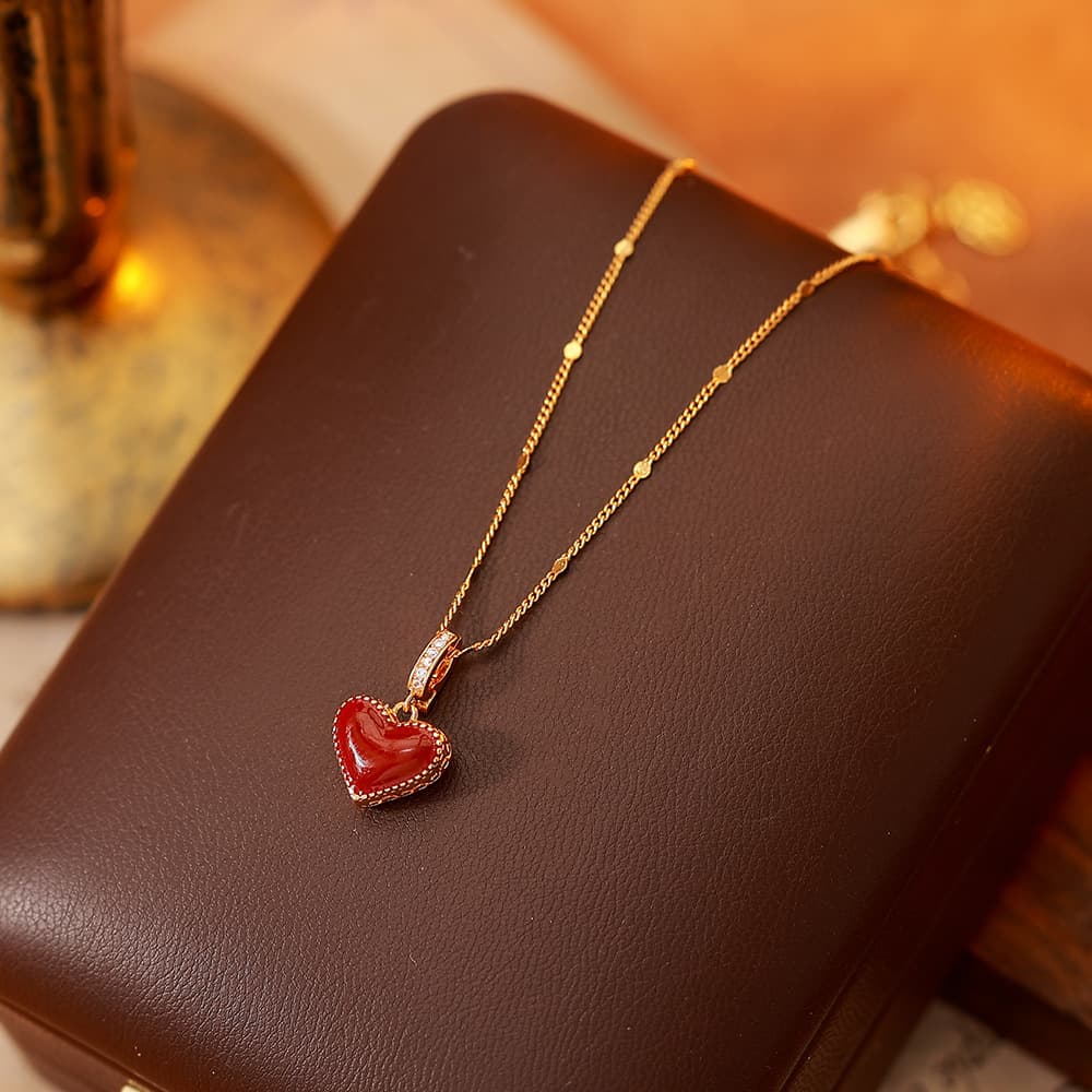 Wine Red Agate Dripping Oil Heart Pendant Necklace