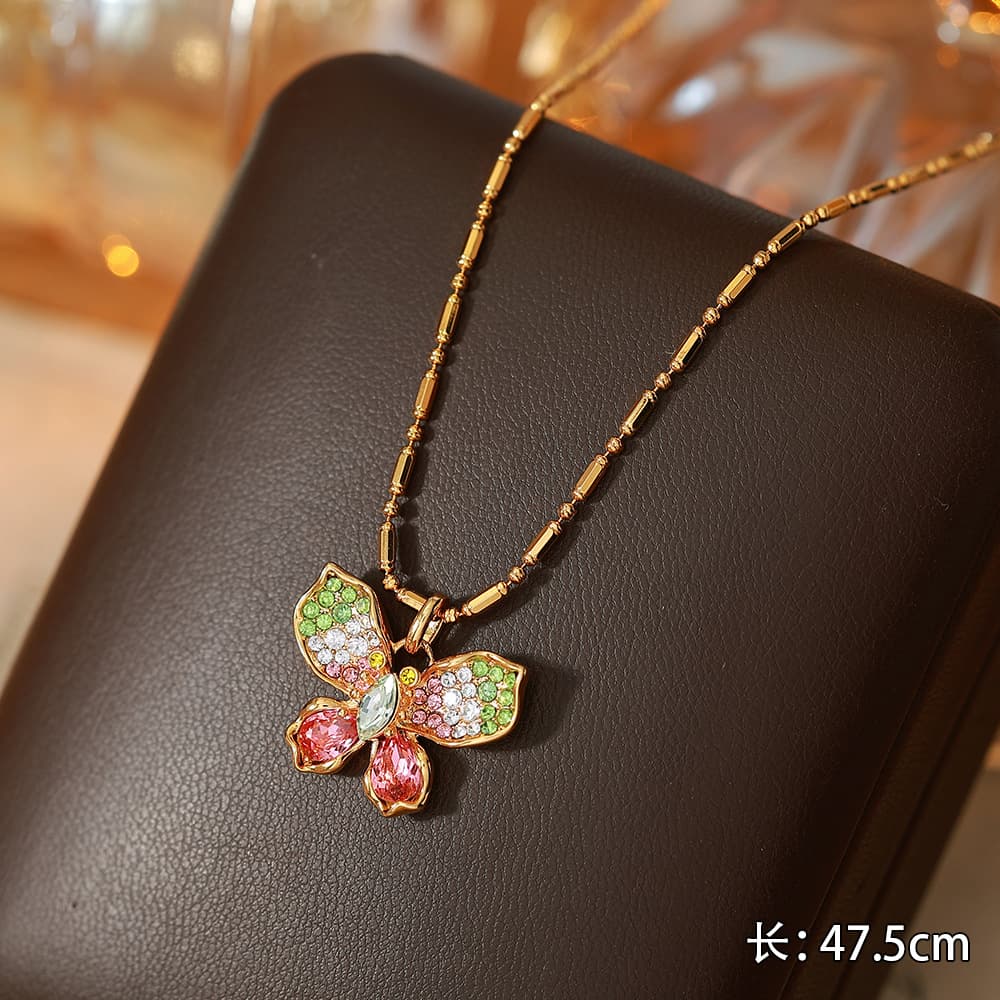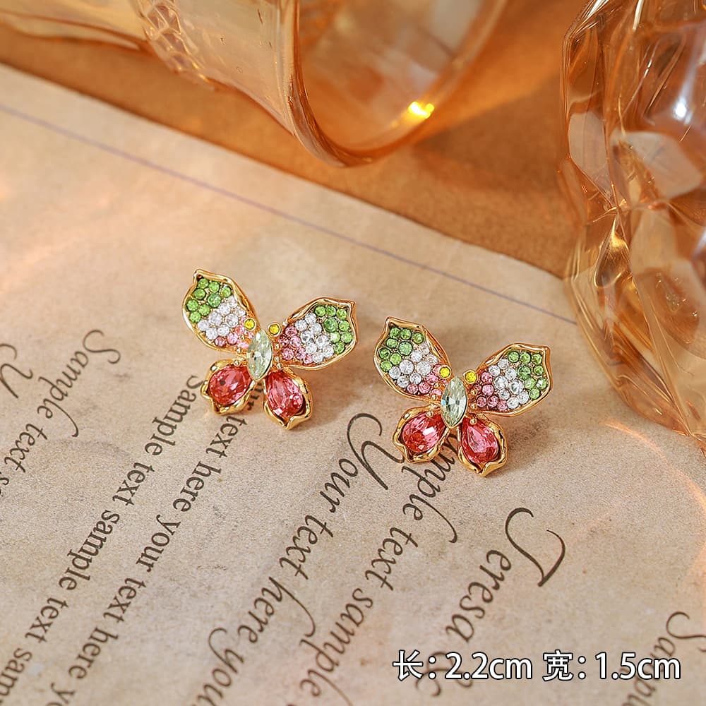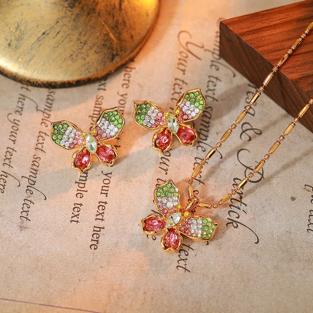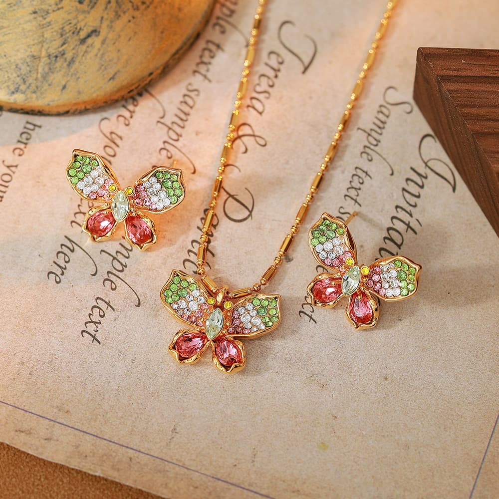 Women's Gold Plated Colorful Crystal Butterfly Necklace Earring Set