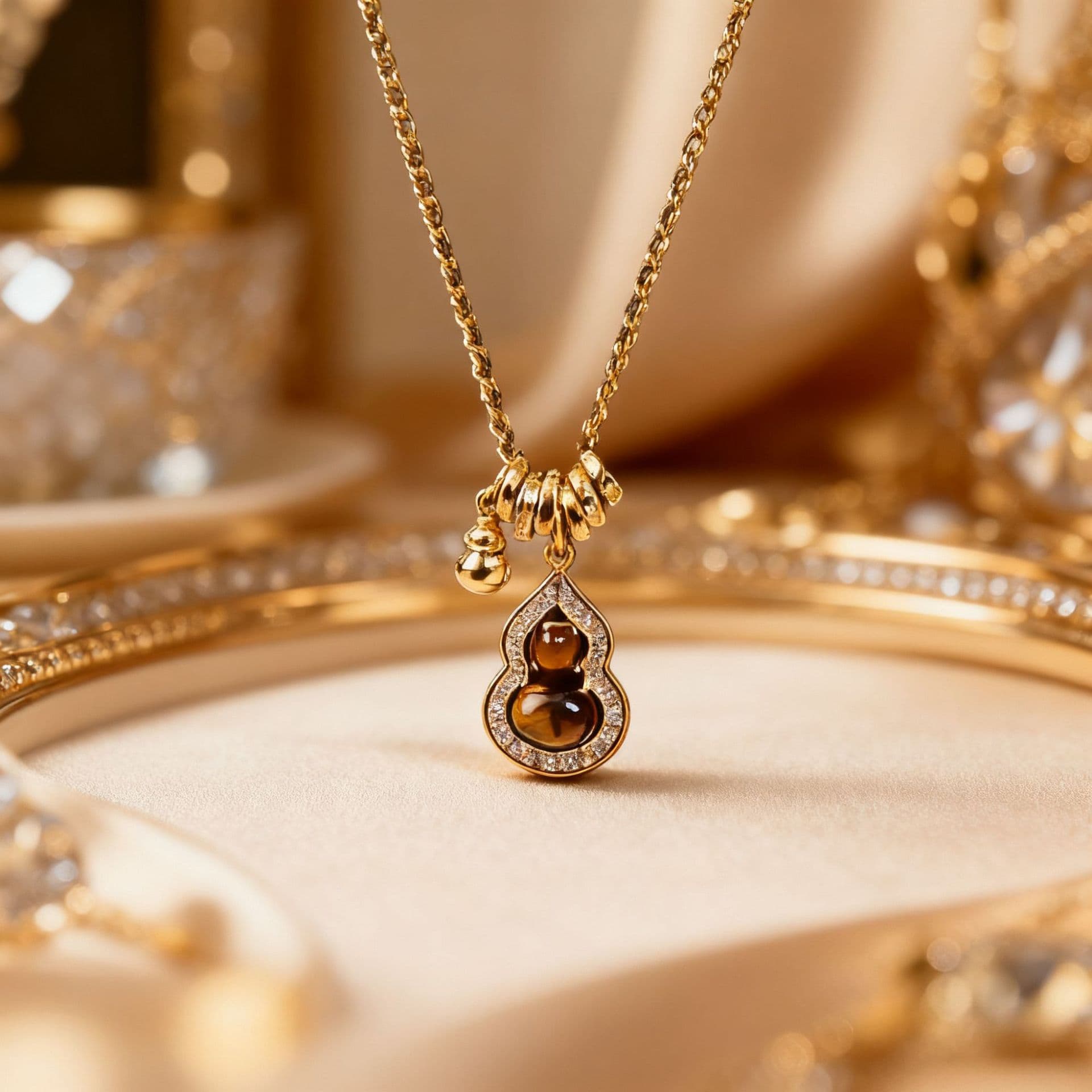 18K Gold Plated Copper Natural Tigereye Gourd Beaded Necklace