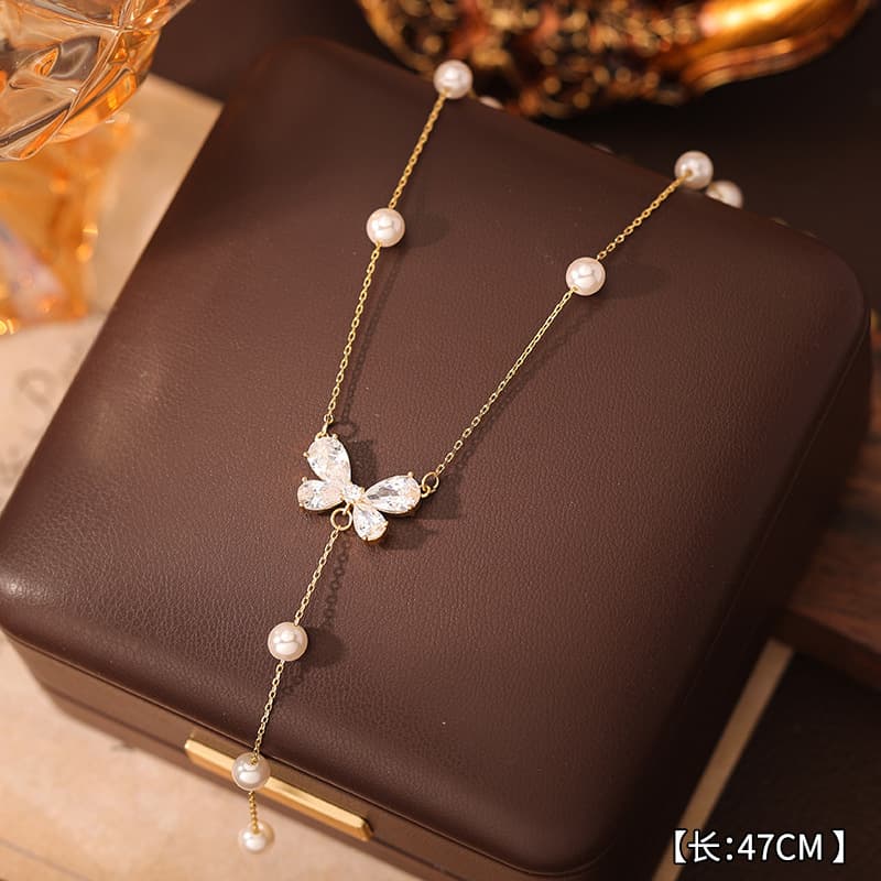 Discover our unique Copper Pearl Butterfly Saturn Pendant Necklace, a captivating accessory designed to elevate any jewelry collection. This piece combines celestial