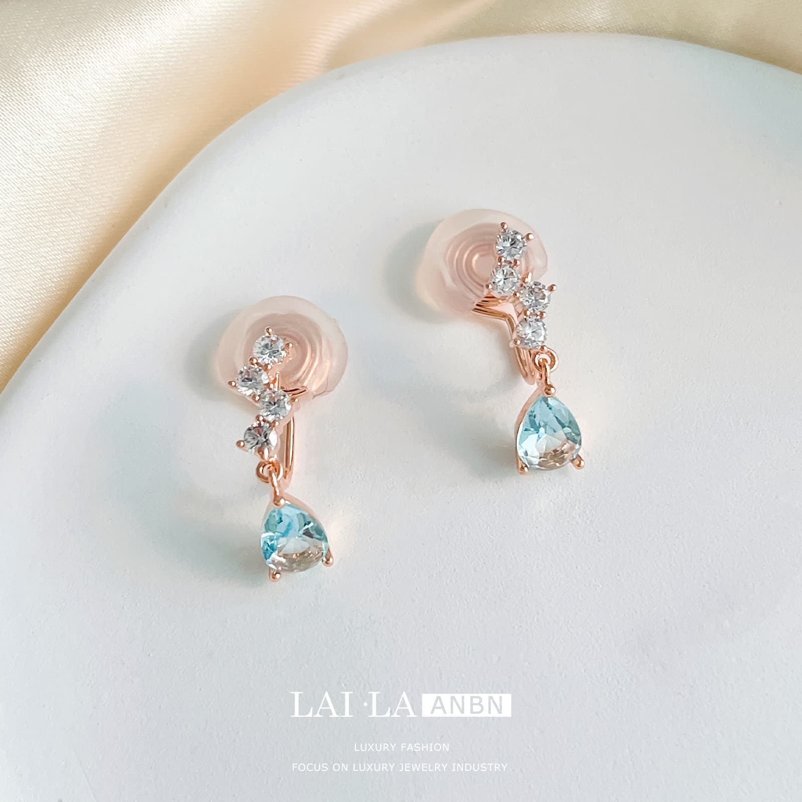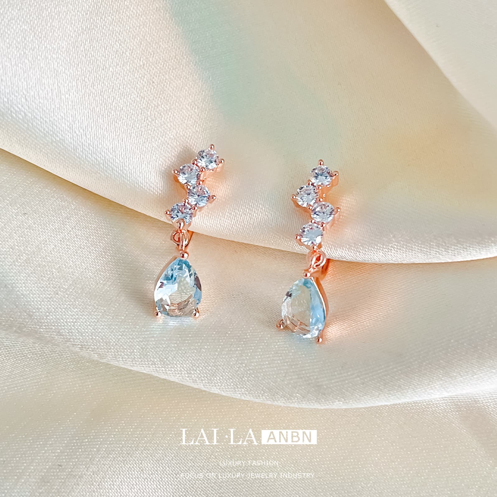 Introduce a touch of refined elegance to your inventory with our Blue Topaz Zircon Water Drop Earrings & Ear Clips.