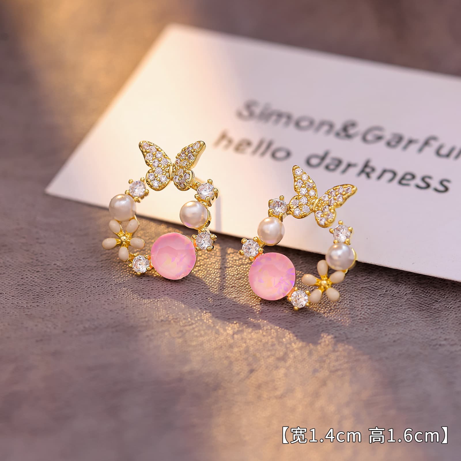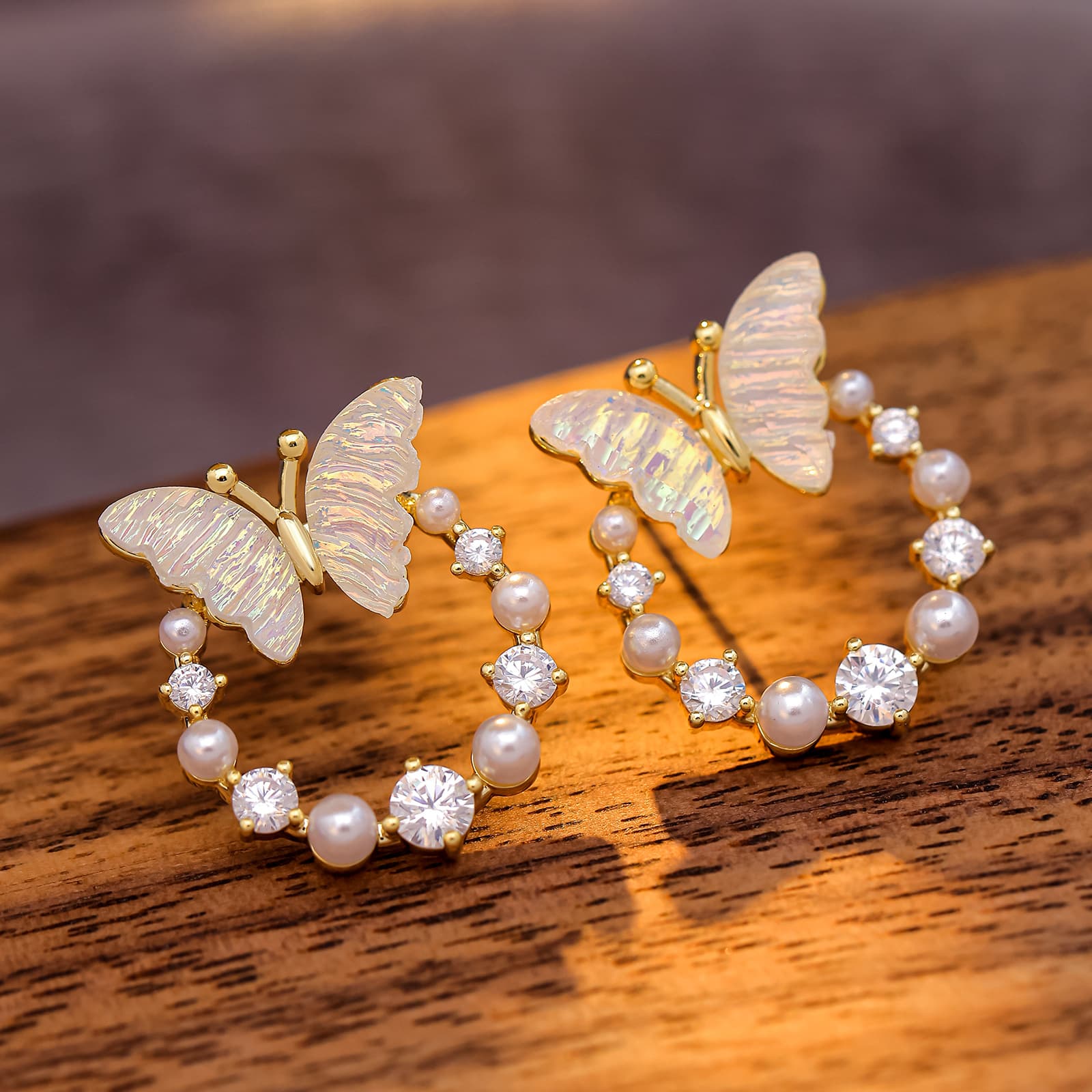 Gold Plated 925 Silver Butterfly Flower Zircon Studs