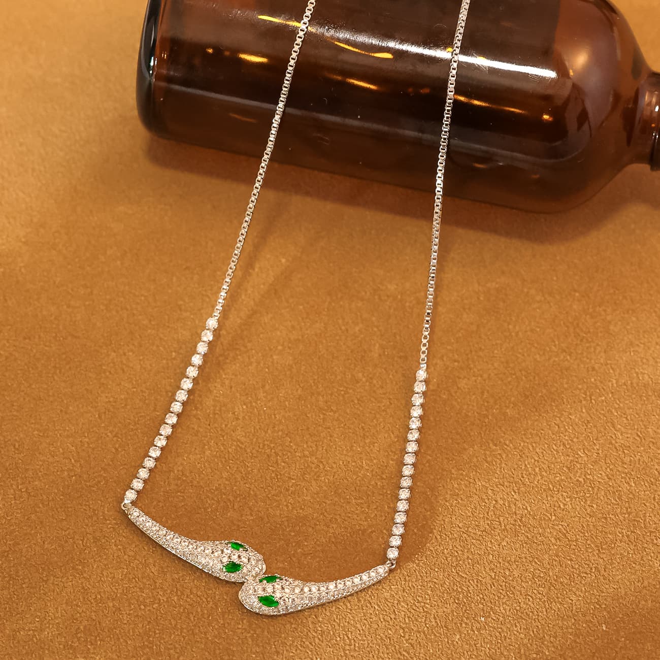 Snake CZ Emerald Gold Plated Necklace Set