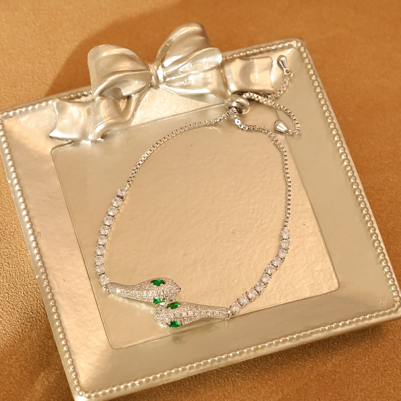 Introduce your customers to the exquisite Snake CZ Emerald Gold Plated Jewelry Collection, featuring a high-end aesthetic