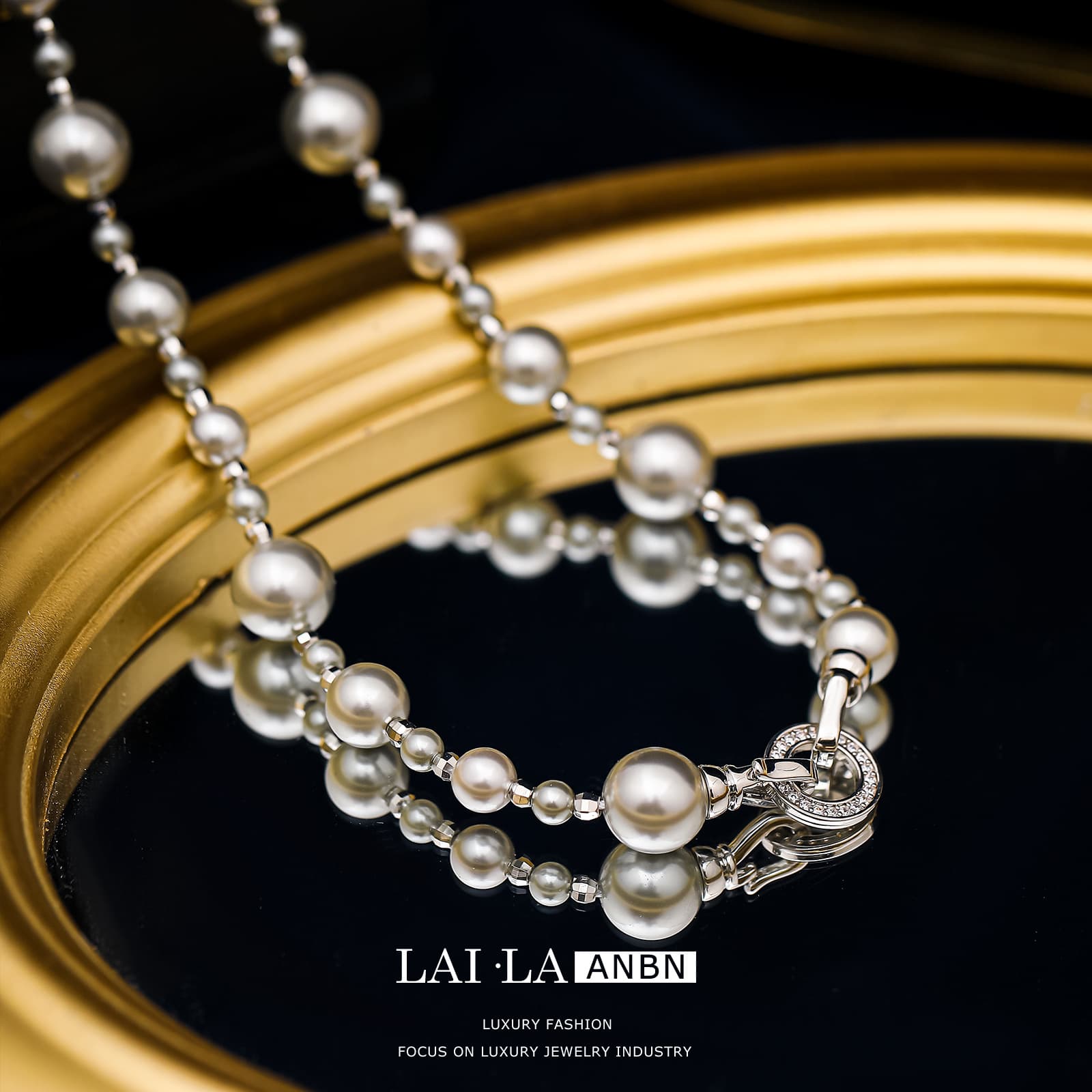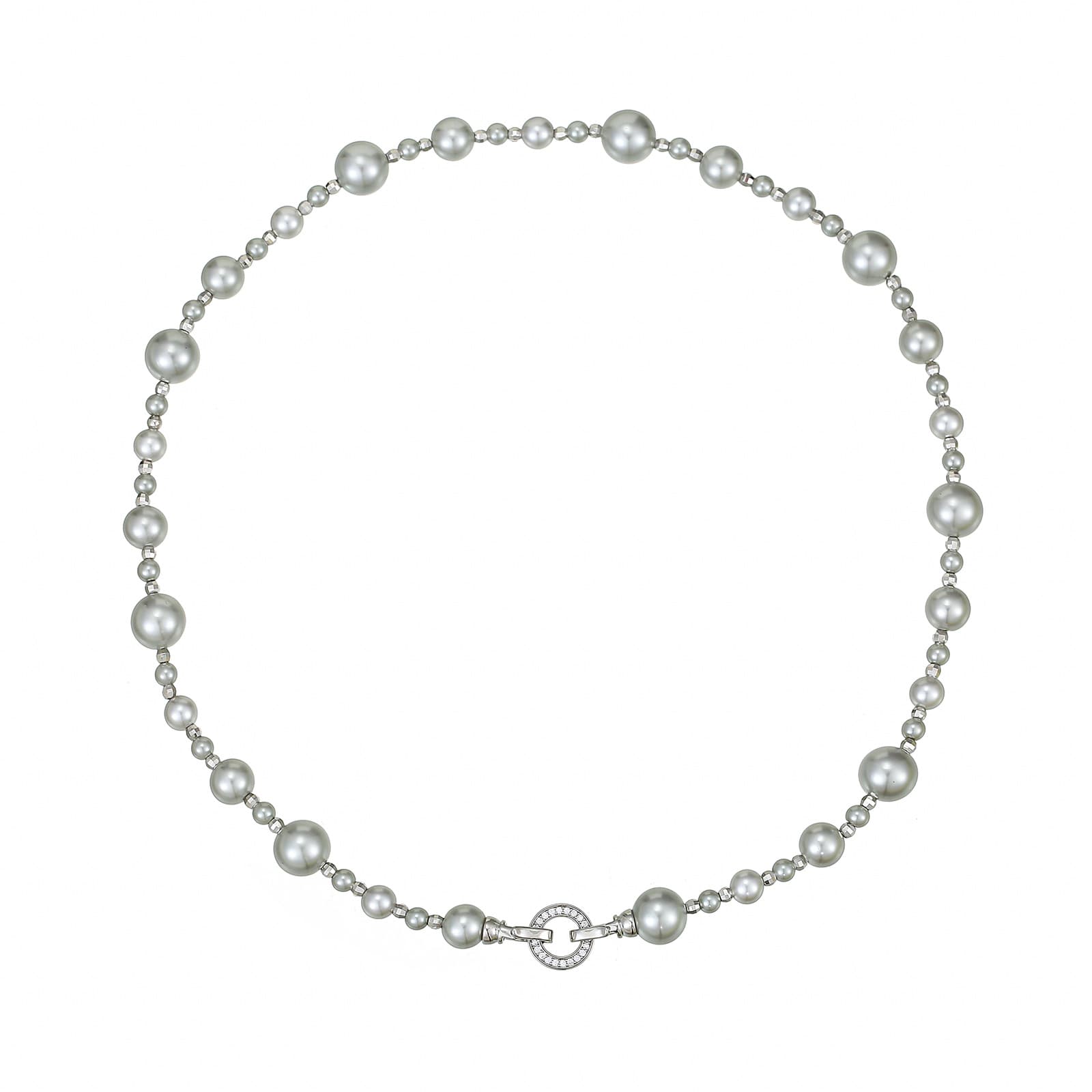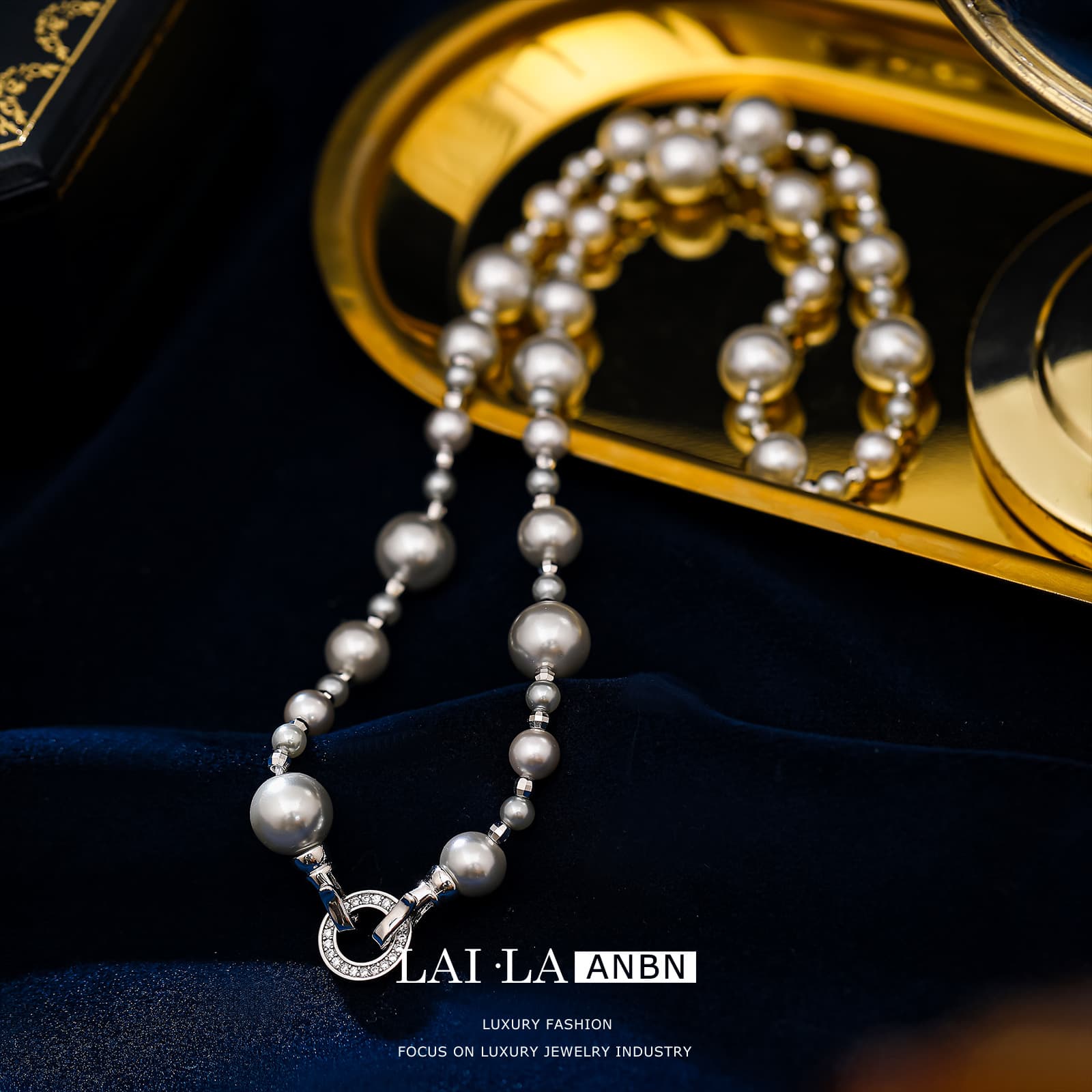 Retro Electroplated Imitation Gray Pearl Necklace with Palladium Pendant