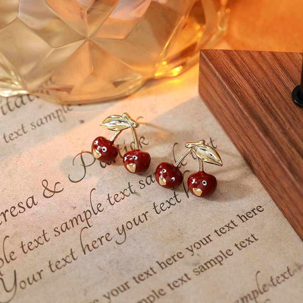 Red Fruit Bow Diamond Stud Earrings, 925 Silver