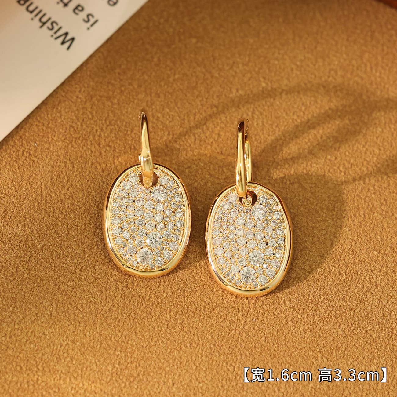 Oval Full Diamond Dense Inlaid Hoop Earrings
