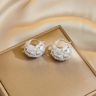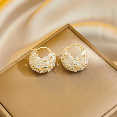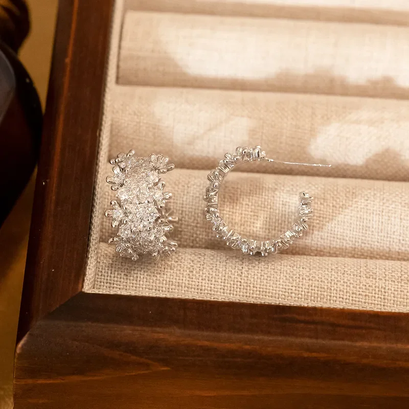 Sophisticated hollow double C design earrings featuring premium zircon stones. These elegant statement pieces combine modern geometric aesthetics with luxury appeal, perfect for fashion-forward retailers seeking distinctive jewelry collections.