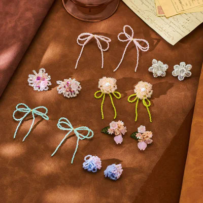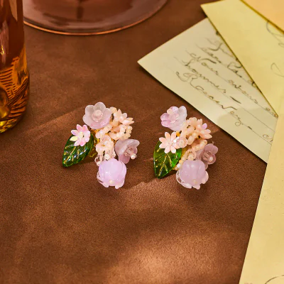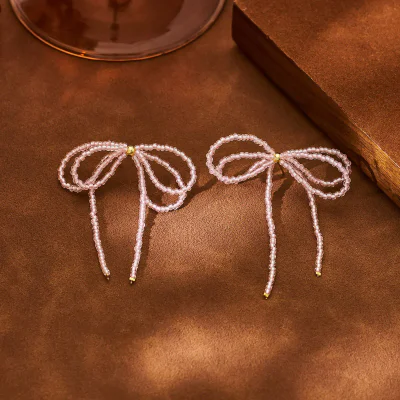 Delicate pink crystal beaded stud earrings featuring a dreamy fairy-core aesthetic. These charming earrings combine colorful crystal beads with a fresh, romantic style perfect for spring and summer collections.