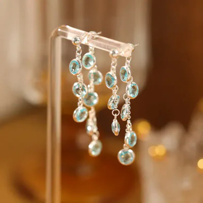 Elegant Bohemian Crystal Drop Earrings with S925 Silver Needle