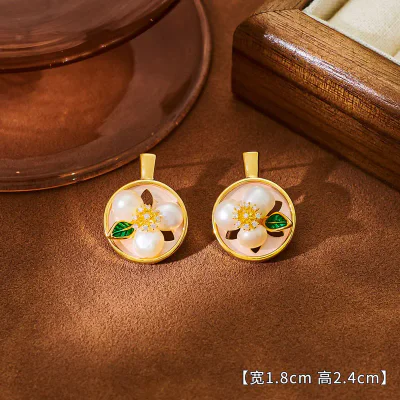 Real Gold Plated Oil Drip Floral Freshwater Pearl Earrings