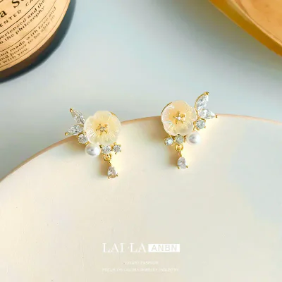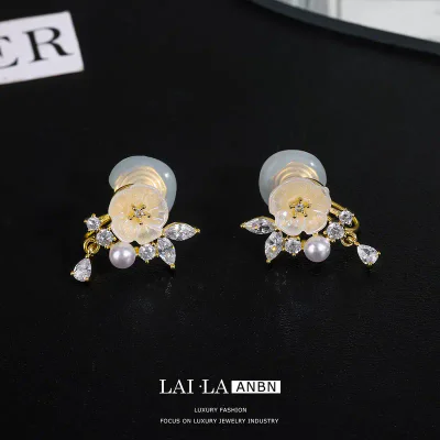 Flower Pearl Zircon Ear Studs and Non-Pierced Ear Clips
