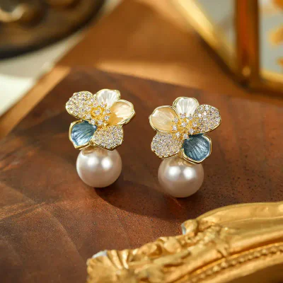 Elevate your collection with these exquisitely designed Manta Rose Pearl Drop Earrings, a perfect fusion of classic French elegance and contemporary light luxury. Sourced directly from the renowned jewelry hub of Yiwu, these earrings are crafted to appeal to a discerning clientele seeking sophistication and versatility. The design features a harmonious blend of lustrous pearls and sparkling rhinestone accents, creating a high-end aesthetic that is both timeless and on-trend. These earrings are an essential stock item for retailers aiming to provide high-perceived value and refined style to their customers.