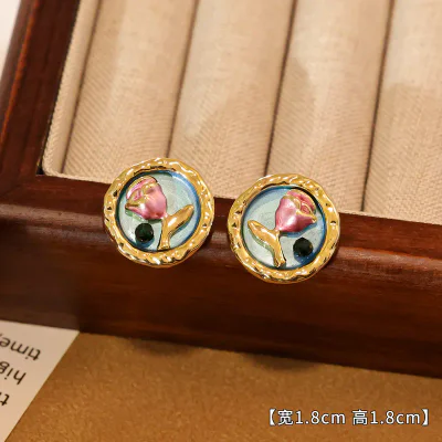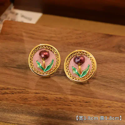 Natural Pearl French Retro Oil Painting Ear Studs