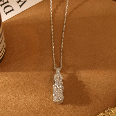 Elevate your jewelry collection with this masterfully crafted Pixiu Pendant Necklace, a piece that seamlessly blends ancient symbolism with contemporary luxury. The Pixiu, a powerful mythical creature in Chinese culture, is revered for its ability to attract wealth, good fortune, and protect its wearer from misfortune. This necklace features a striking, three-dimensional Pixiu pendant, meticulously encrusted with a full pavé of high-grade, diamond-like stones that deliver exceptional brilliance. With an adjustable length of 51-60cm, it is designed as an elegant 'sweater chain,' perfect for layering over knitwear, blouses, or dresses, making it a versatile statement piece for all seasons. This item is positioned to replicate the quality and feel of fine jewelry found in premium gold shops, offering your customers a luxurious aesthetic at an accessible price point.