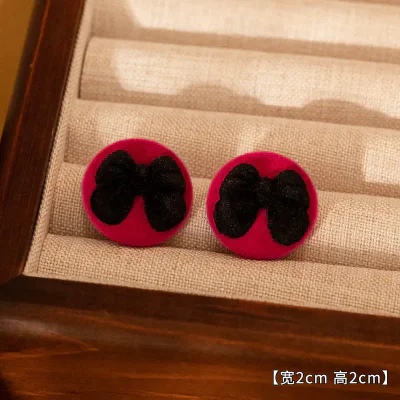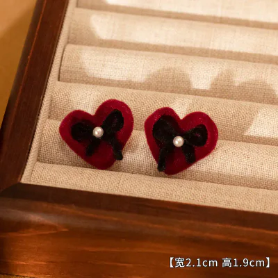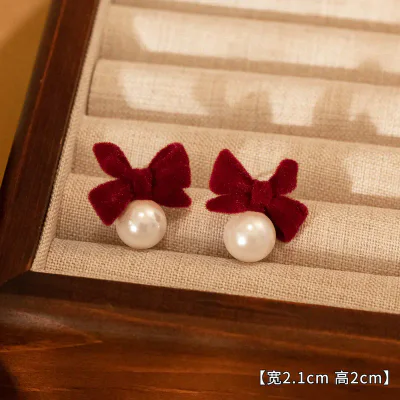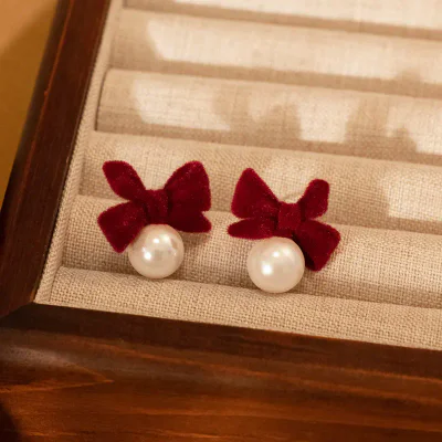 Introduce a touch of seasonal elegance to your collection with our premium Red Flocked Bow Stud Earrings. Expertly crafted for the discerning B2B market, these earrings are a perfect inventory addition for the autumn and winter seasons, as well as festive holidays like Christmas and Valentine's Day. The design features a classic bow motif, rendered in a rich, vibrant red with a luxurious flocked texture that provides a soft, velvety feel. This timeless design is offered in two subtle variations to cater to diverse customer preferences, ensuring broad market appeal. Sourced directly from the renowned jewelry hub of Yiwu, these earrings combine sophisticated design with accessible wholesale pricing, making them a high-margin product for retailers.
