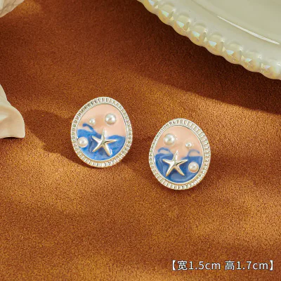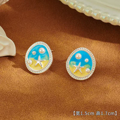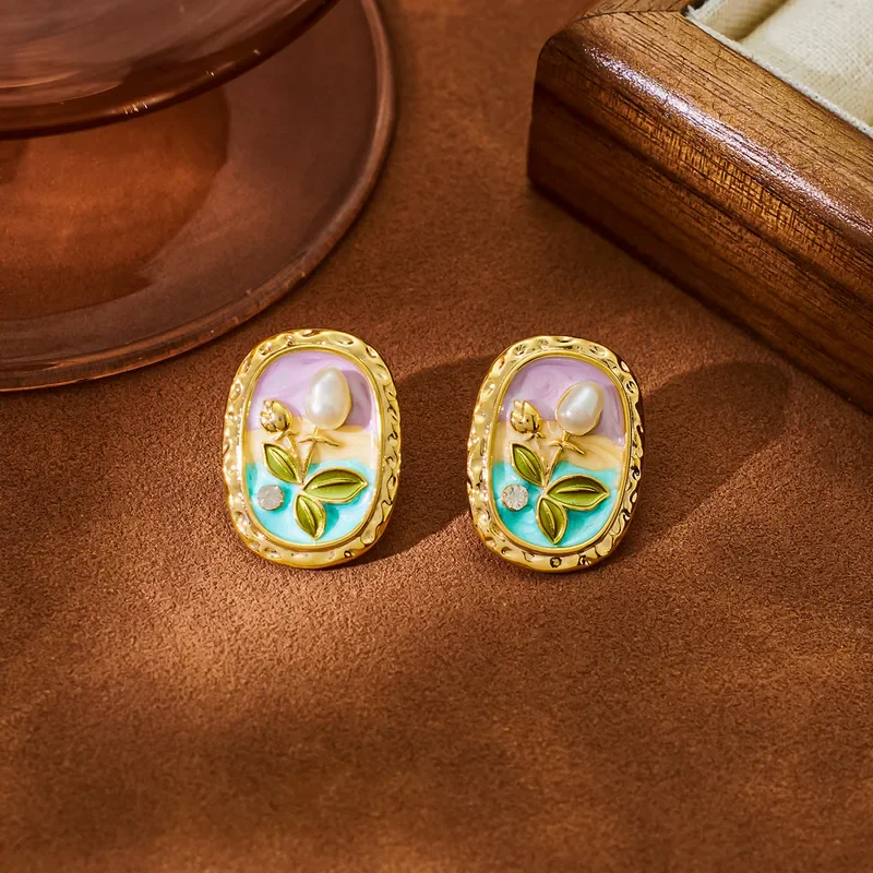 Monet Garden Natural Pearl 925 Silver Retro Oil Painting Earrings