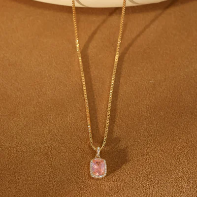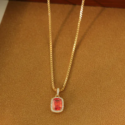 Elevate your jewelry collection with this exquisite Gold-Plated Necklace, featuring a stunning simulated red corundum centerpiece. Drawing inspiration from classic vintage designs while maintaining a clean, minimalist aesthetic, this piece is a testament to timeless style. The vibrant, deep red of the cushion-cut main stone captures the essence of luxury, making it a highly desirable item for retailers targeting customers who appreciate sophisticated and affordable elegance. This necklace is expertly crafted to be a versatile staple, perfect for adding a touch of color and class to any outfit, from professional attire to evening wear.