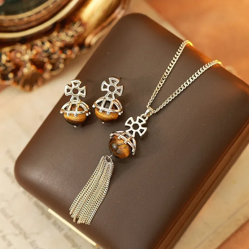 Elevate your accessory collection with this exquisitely crafted Vintage Natural Tiger Eye Waterdrop Necklace, a sophisticated piece designed for the discerning B2B market. Drawing inspiration from the warm, rich tones of the popular 'Maillard' aesthetic, this necklace combines classic elegance with contemporary fashion trends. The centerpiece, a genuine Tiger Eye gemstone, is expertly cut into a timeless waterdrop shape, showcasing the stone's natural chatoyancy and unique golden-brown striations. This necklace is an ideal inventory addition for retailers seeking high-quality, on-trend fashion jewelry with a high perceived value and broad market appeal.
