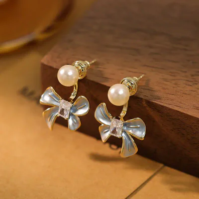 Introducing the 2025 collection's standout piece: the Temperament Bow & Pearl Earrings. Expertly crafted for the discerning retailer, these earrings capture a unique blend of light luxury, timeless elegance, and gentle femininity. The design centers around a meticulously shaped bow motif, available in serene green, classic blue, and pristine white, each cradling a lustrous pearl. This accessory is designed not just to adorn, but to elevate, making it a highly sellable item for boutiques and online stores aiming to offer their clientele sophisticated, versatile jewelry. Its niche design sense ensures it stands out from mass-market alternatives, appealing to customers seeking unique and refined pieces.