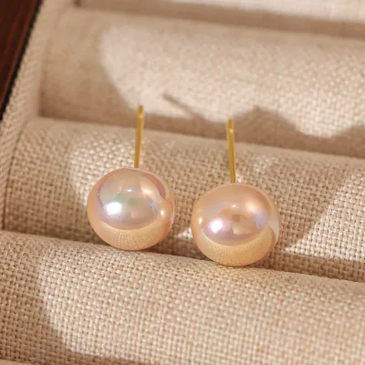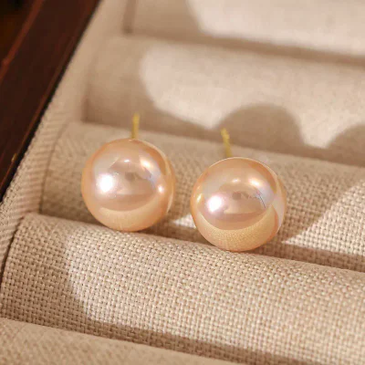 Timeless Elegance: Wholesale Champagne Button Pearl Stud Earrings